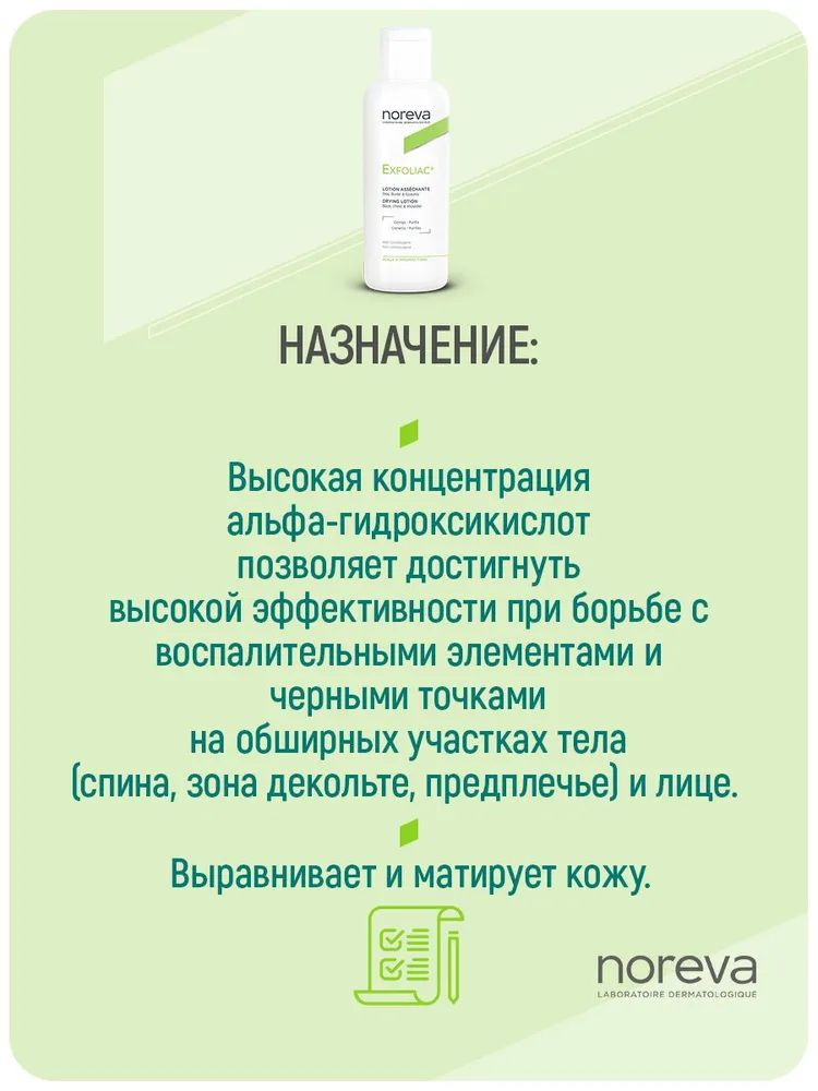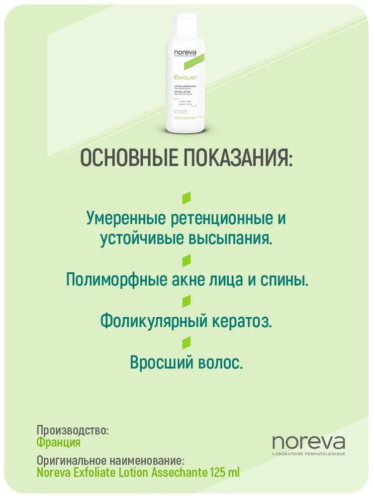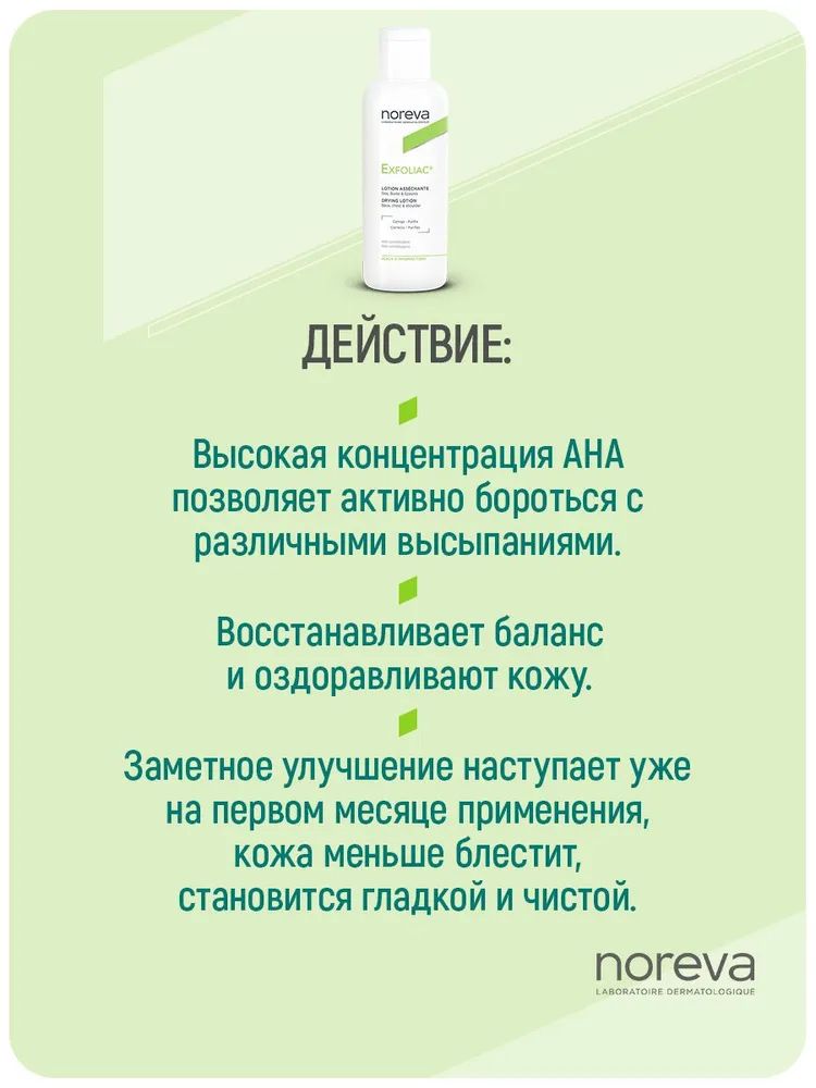 Описание товара Лосьон Noreva Exfoliac с высоким содержанием АНА 125 мл