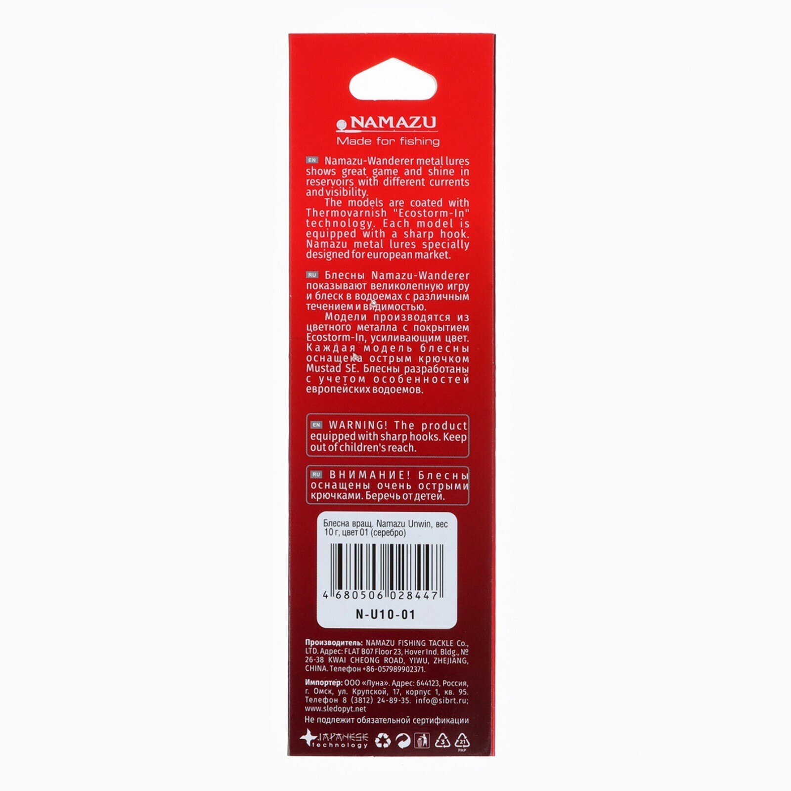 Блесна вращающаяся Namazu Unwin, 10 г, цвет 01 серебро