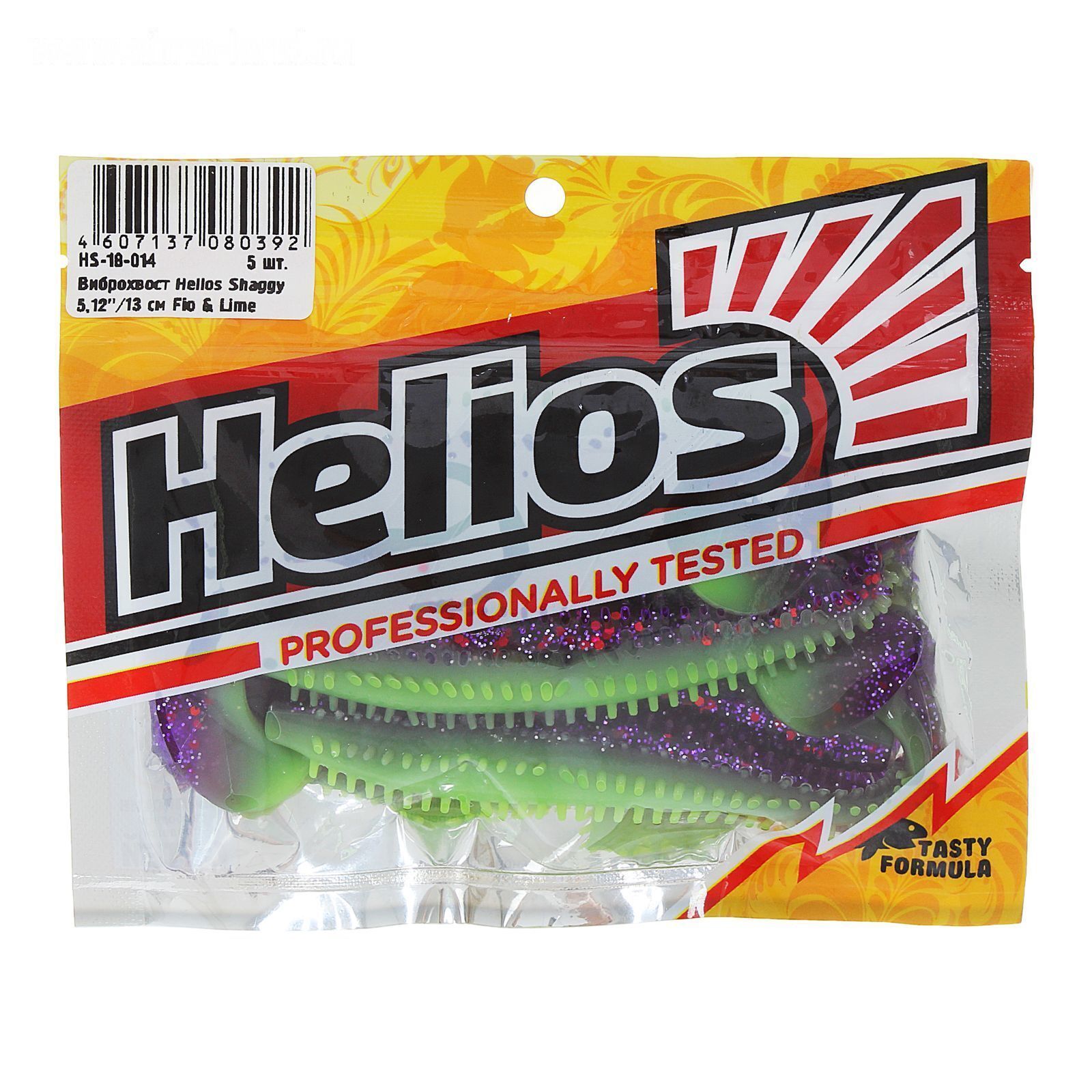 Виброхвост Helios Shaggy — съедобная приманка с очень подвижным хвостом, придающим ей дополнительную активность при любой скорости проводки. Тело этой модели покрыто специальными щетинками, создающими небольшой шумовой эффект. Сочетание этих трёх характеристик (съедобности, активности и создания звуковых волн) провоцирует на атаку даже пассивного хищника.