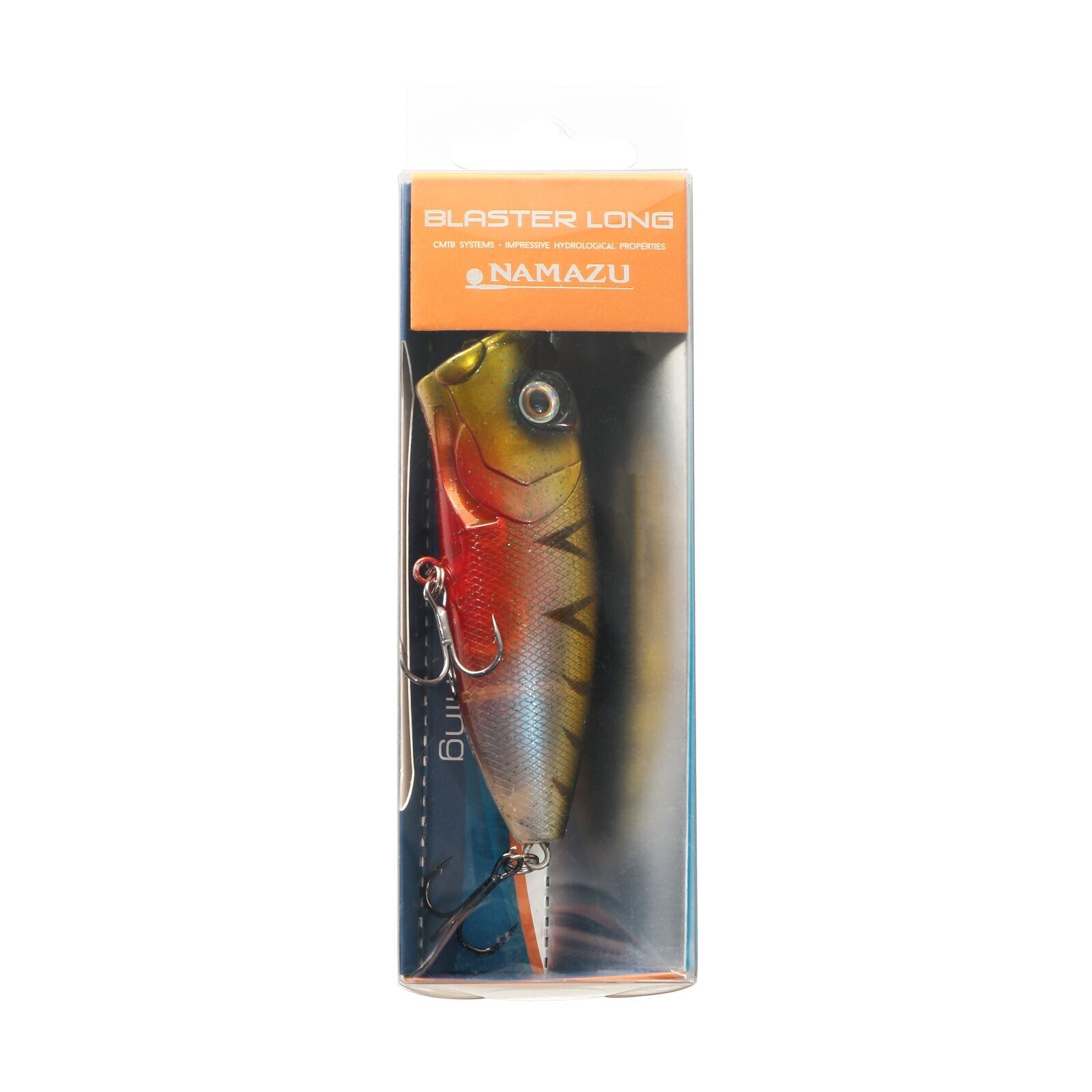 Поппер Namazu Blaster Long относится к поверхностному типу воблеров, также именуемых топ-вотерами. Головная часть поппера Blaster Long всегда скошена в форме эллипса, на его боковой части есть разные углубления и вырезы. За счет такого строения, вокруг поппера во время проведения по поверхности воды образуются волны и брызги, а главная «фишка» – это звонкий булькающий звук.