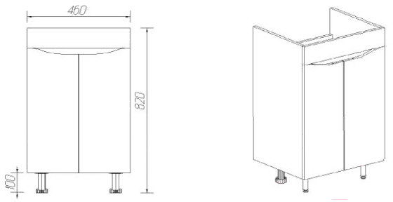 • Высота тумбы под умывальник 82 см