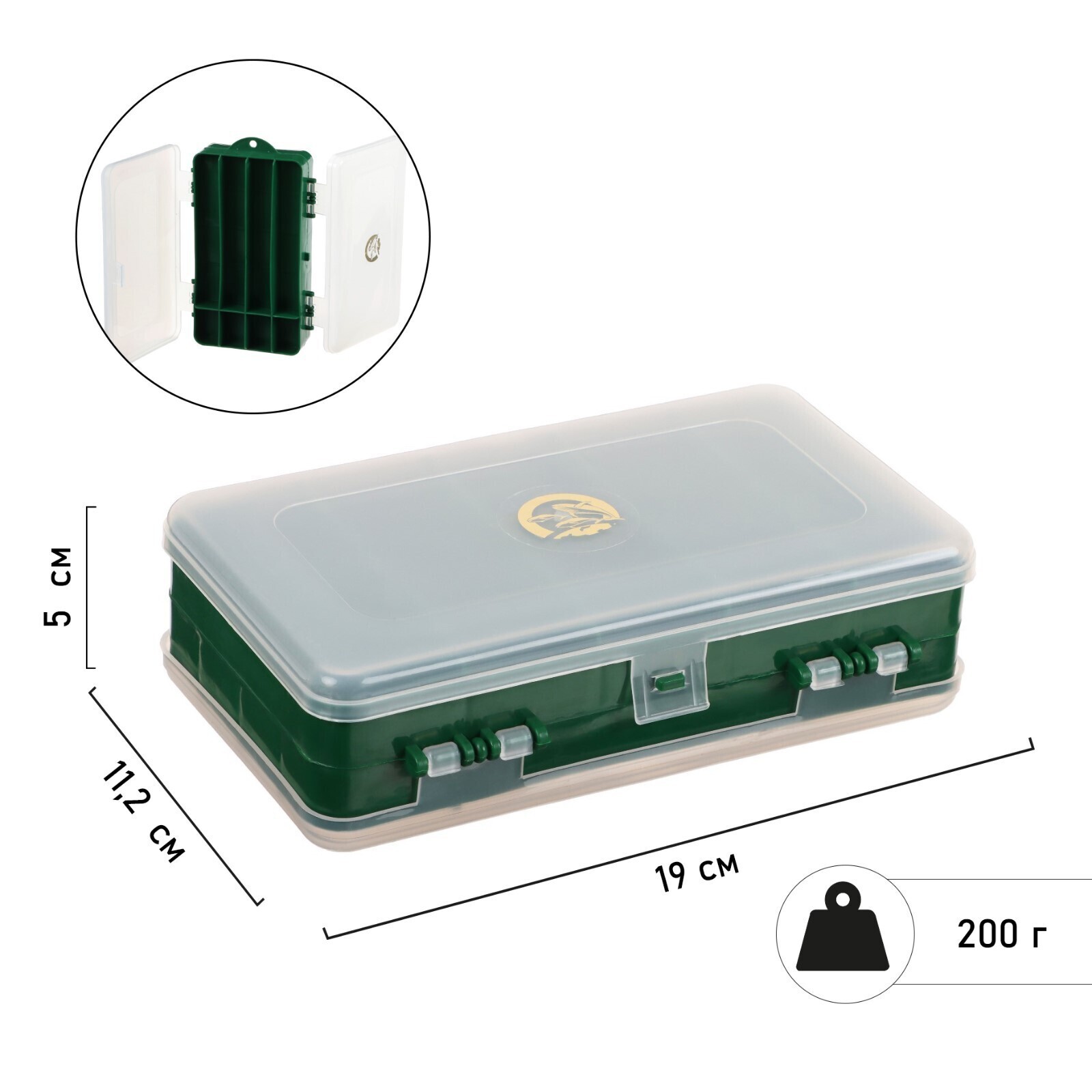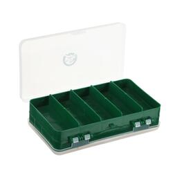 Двусторонняя коробочка изготовлена из качественного морозостойкого полипропилена, не вступающего в химическую реакцию с мягкими наживками. Отличается компактностью и универсальностью. Удобна для хранения оснастки, приманок и других рыболовных аксессуаров.