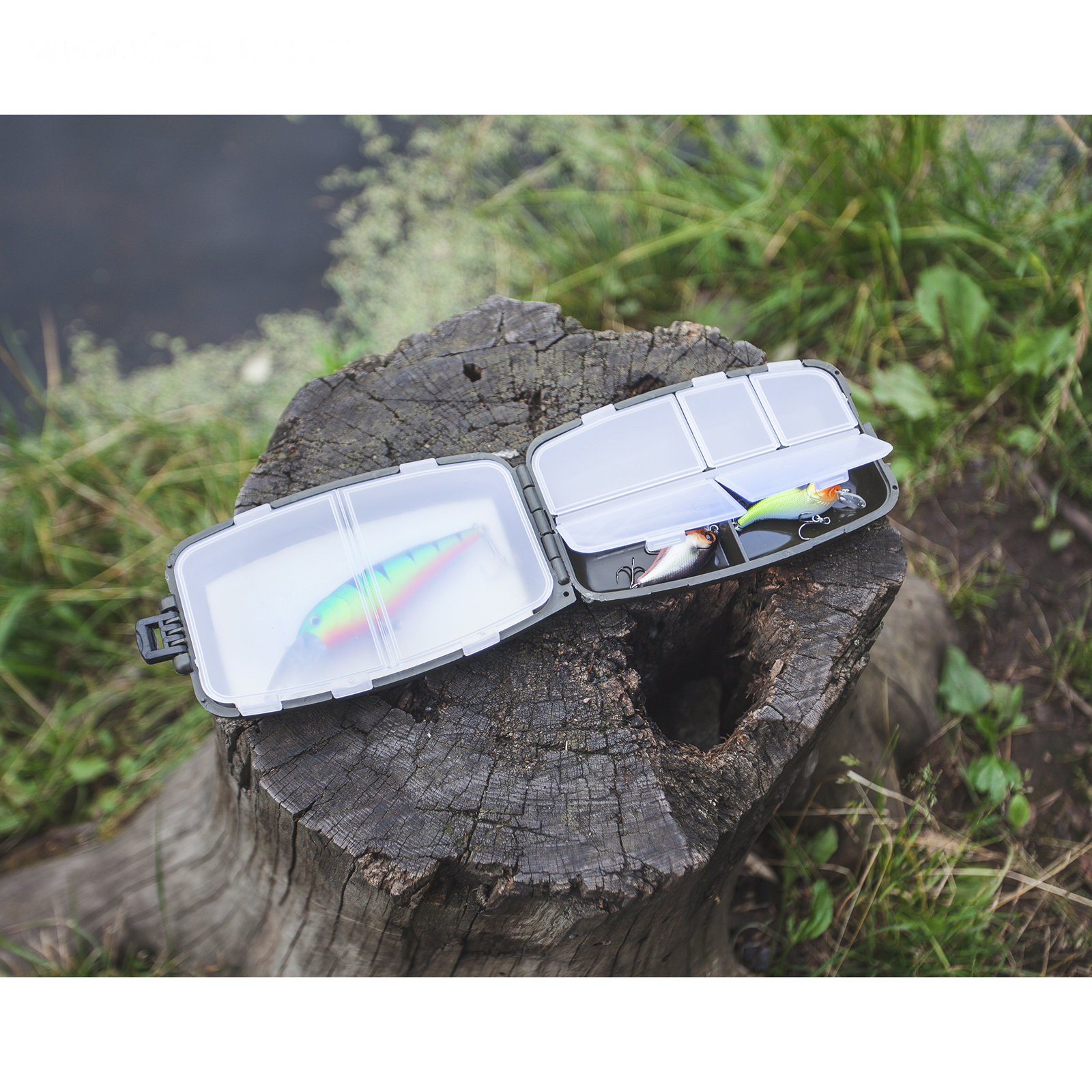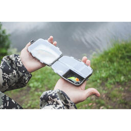 Двухсторонняя коробочка пригодится вам для хранения блёсен и мормышек. Выполнена из качественного полипропилена, не вступающего в химическую реакцию с мягкими наживками.