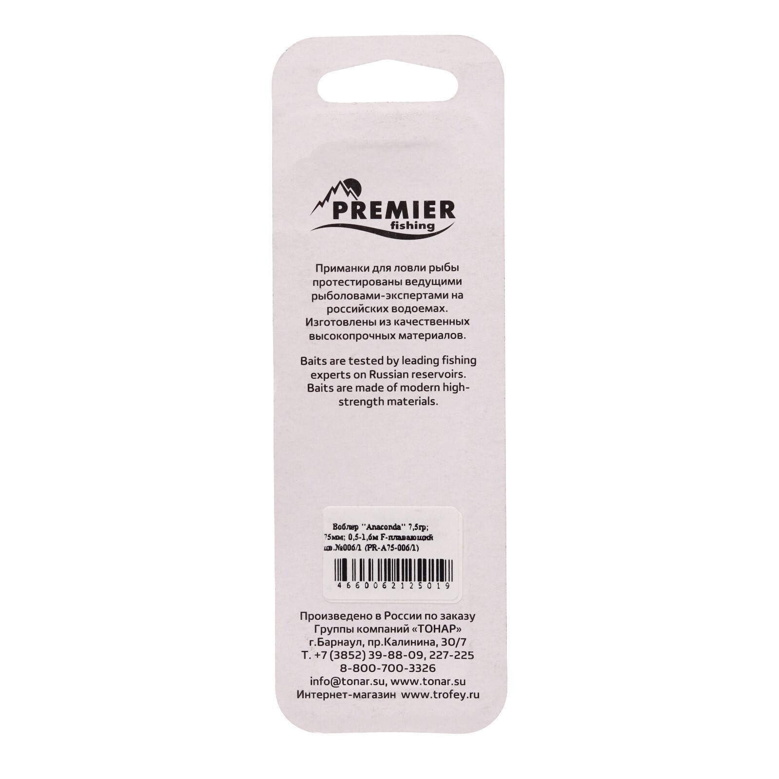 Воблер PREMIER Anaconda, 75 мм, 7.5 г, минноу, плавающий (0.5-1.6 м), цвет 006/1 (PR-A75-006/1)