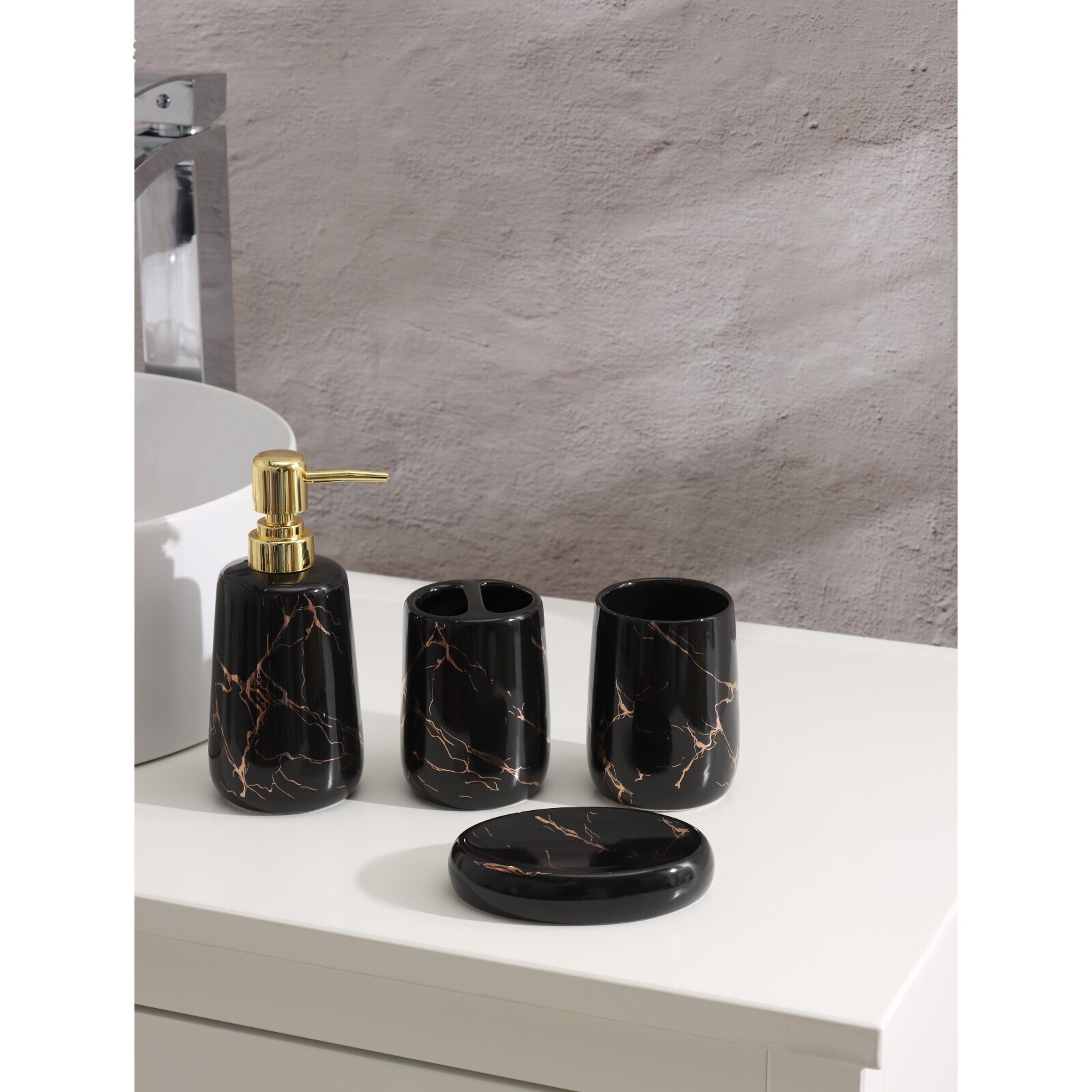 Набор для ванной «Молния», 4 предмета (мыльница, дозатор для мыла, 2 стакана), цвет чёрный