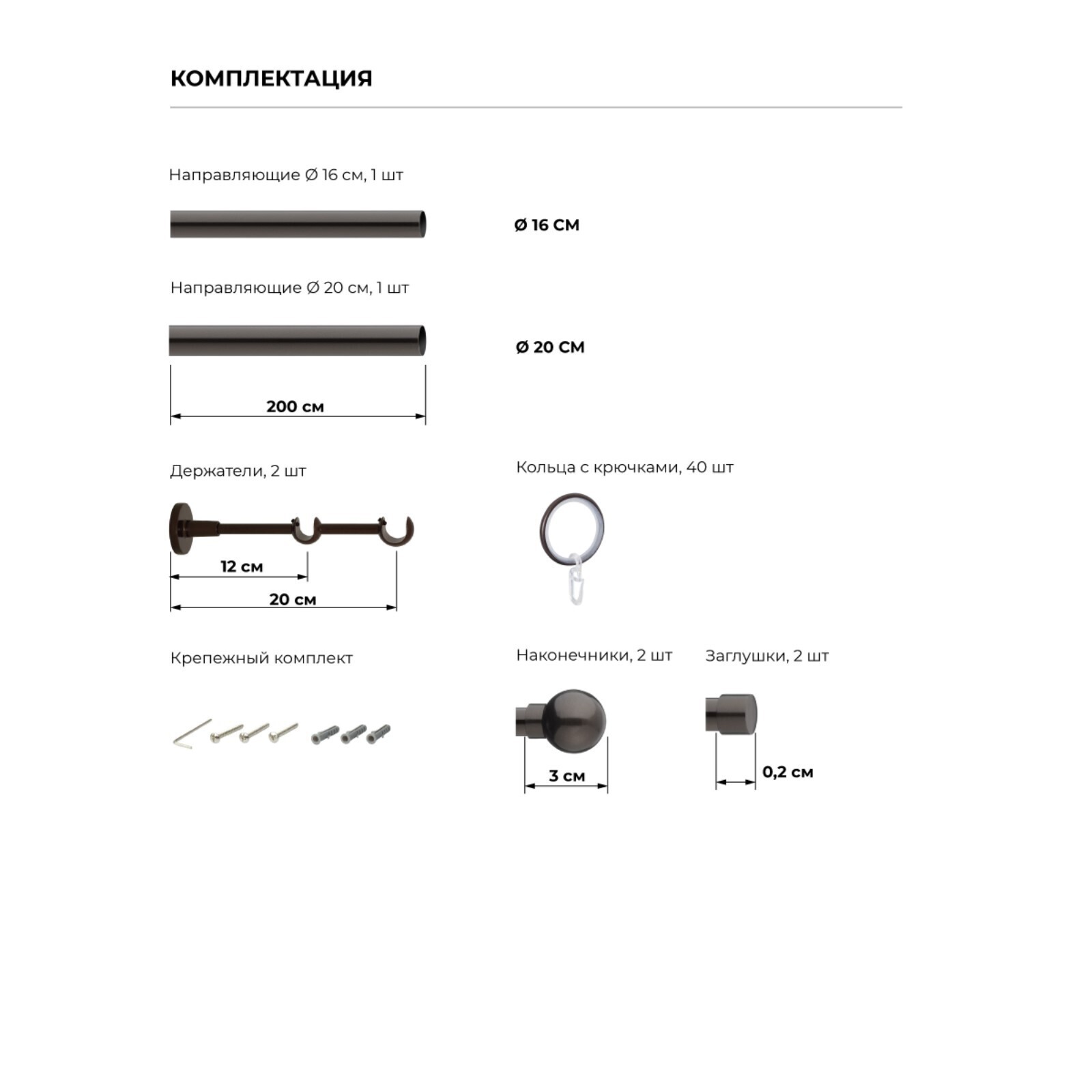 Карниз двухрядный 20/16 мм, 200 см, с наконечником