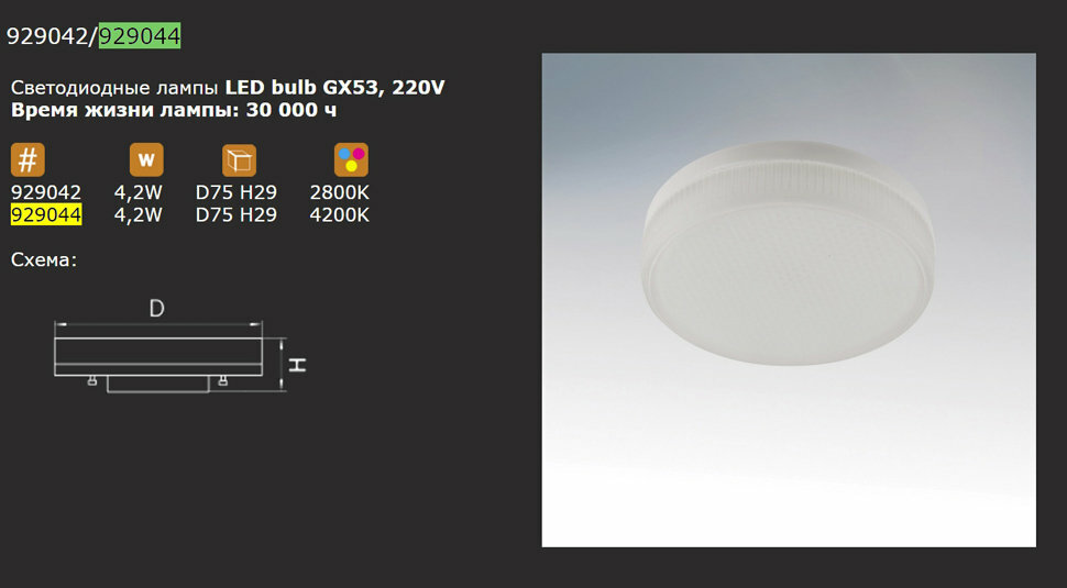 Лампа Lightstar GX53 4.2Вт 4200K