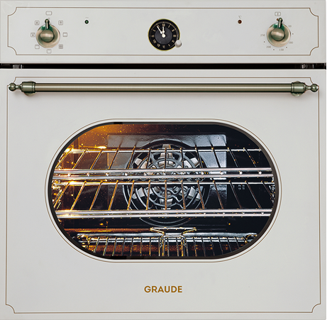 Духовой шкаф BK 60.1 W в ретро-дизайне впишется в любой интерьер и станет его ярким акцентом. 7 автоматических программ позволяют выбрать необходимый режим для конкретного блюда. Эмалированная поверхность внутренней камеры лёгкая в очистке. Двухслойная стеклянная дверца защищает от возникновения ожогов.