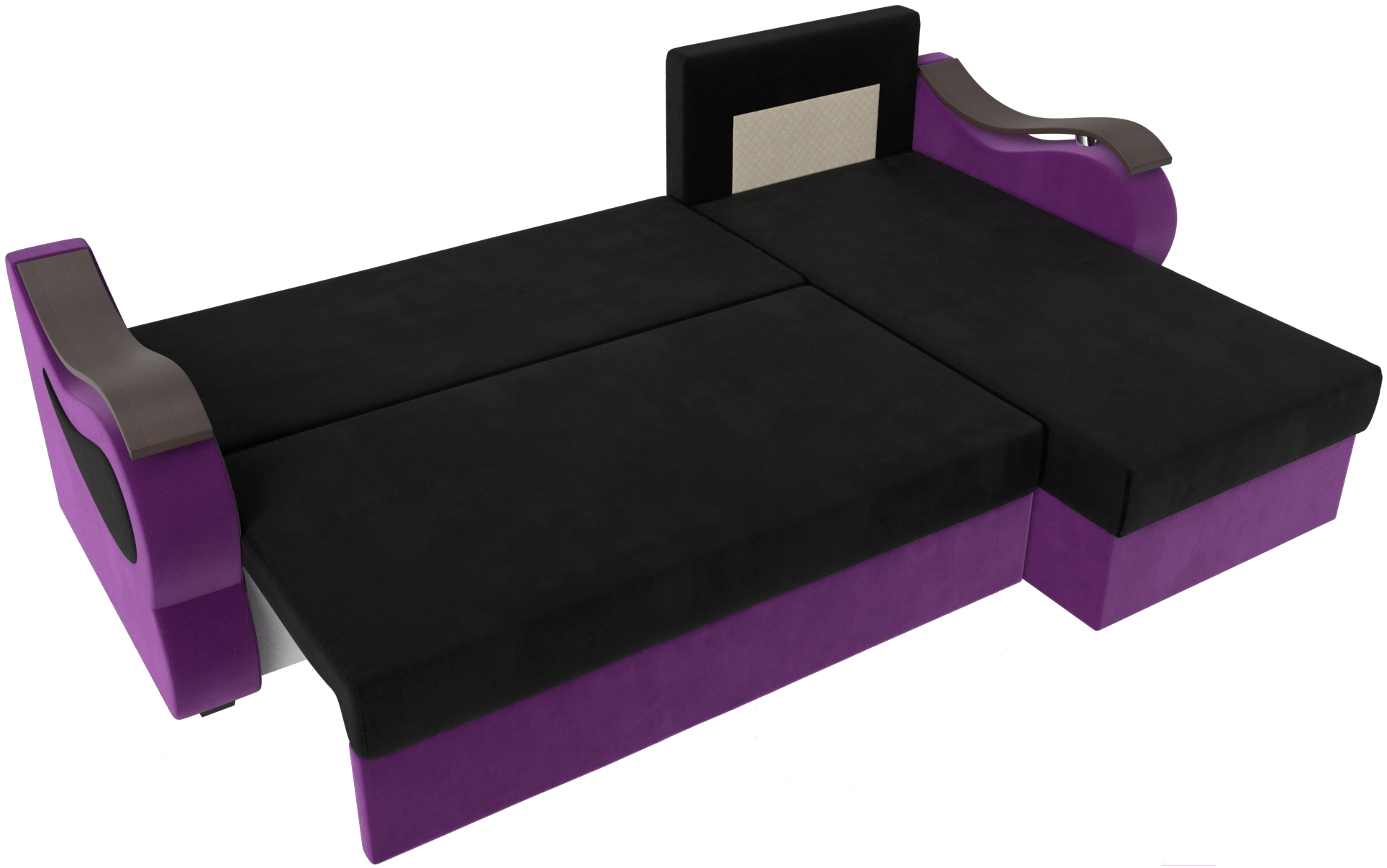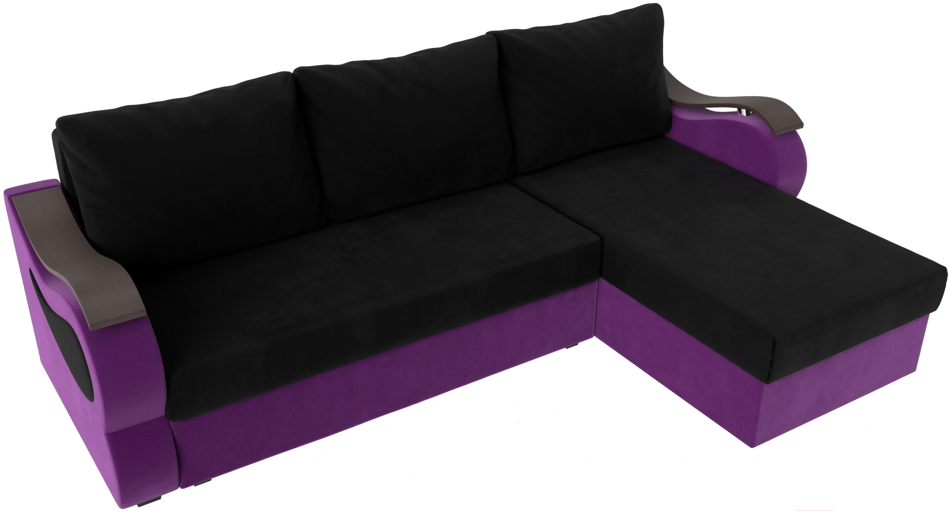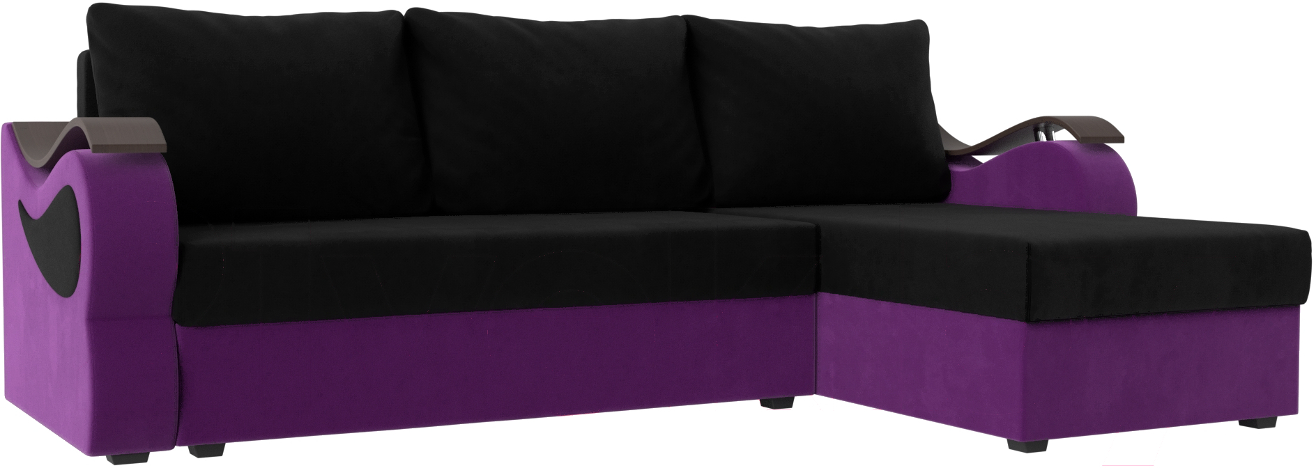 Диван угловой Mebelico Меркурий лайт правый (микровельвет черный/микровельвет фиолетовый)