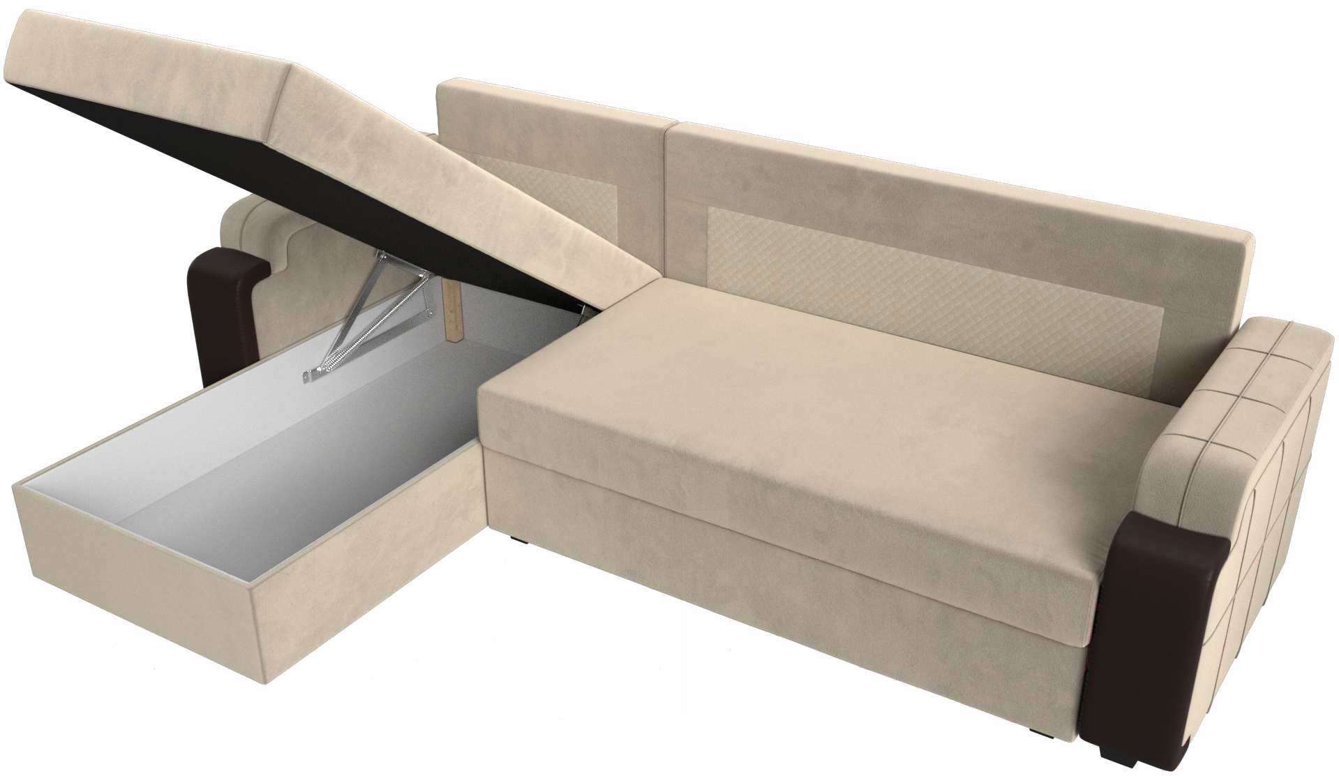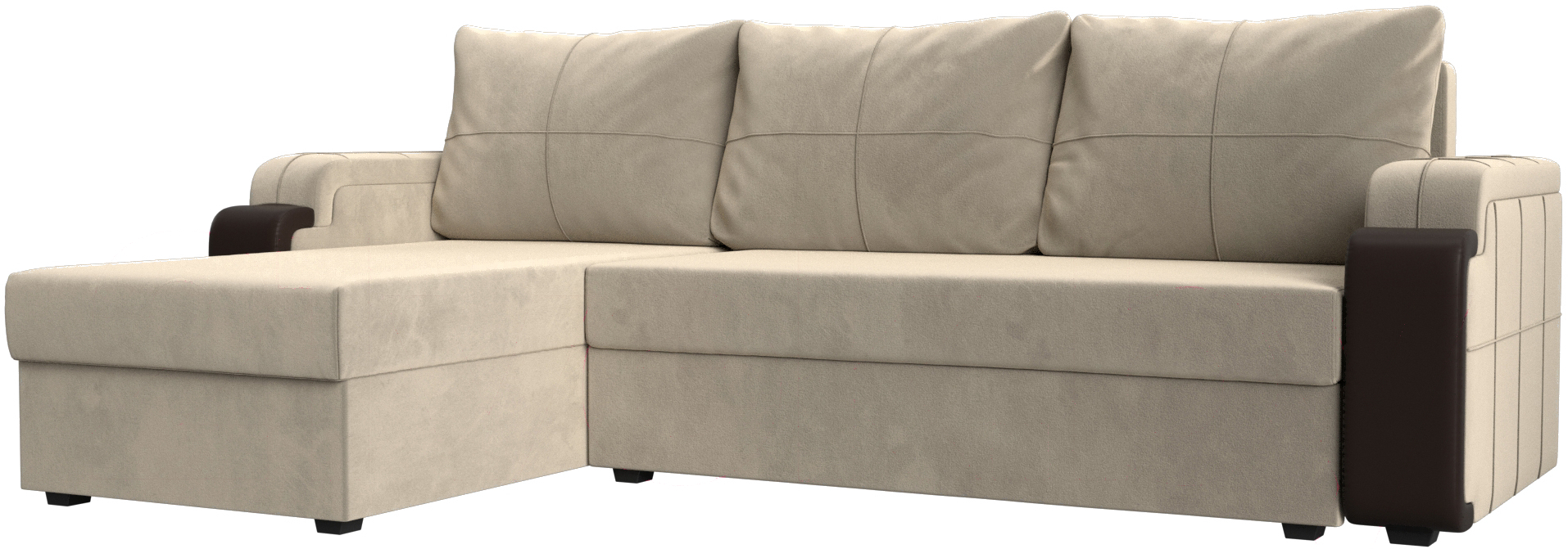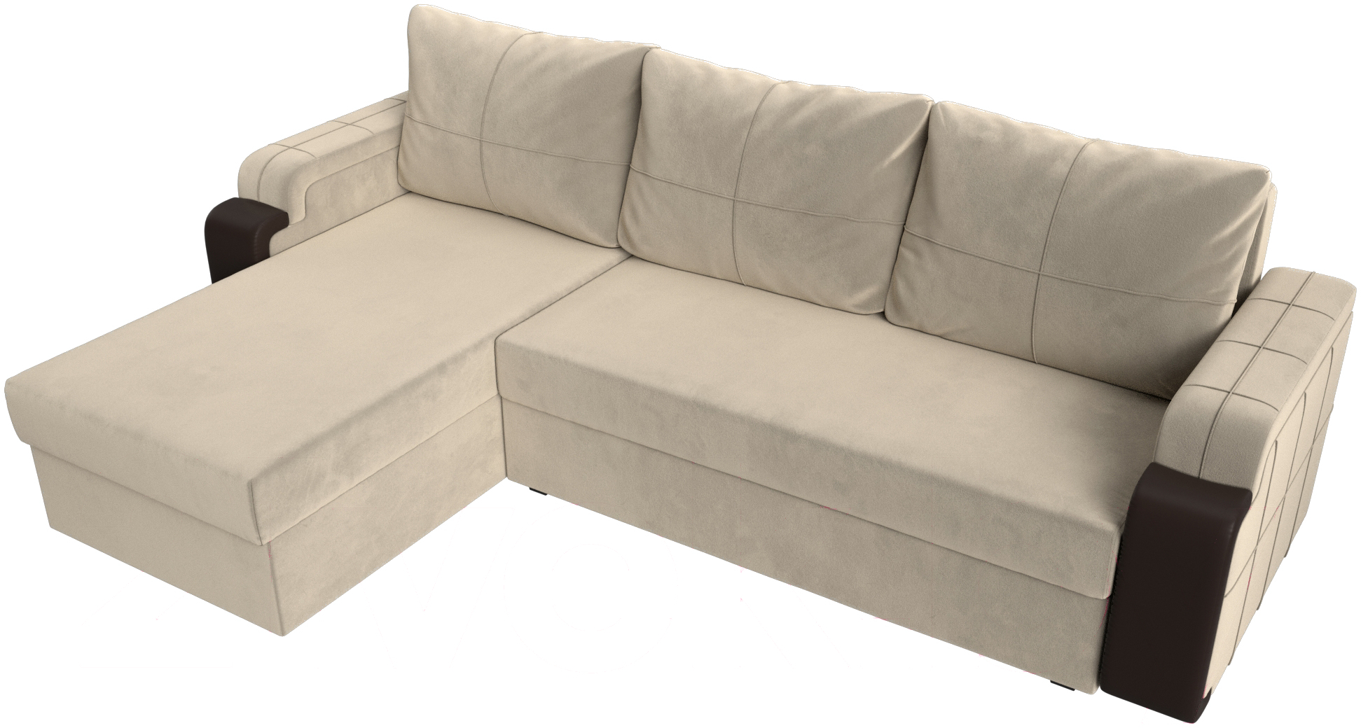 Диван угловой Mebelico Николь лайт левый (микровельвет бежевый/коричневый)