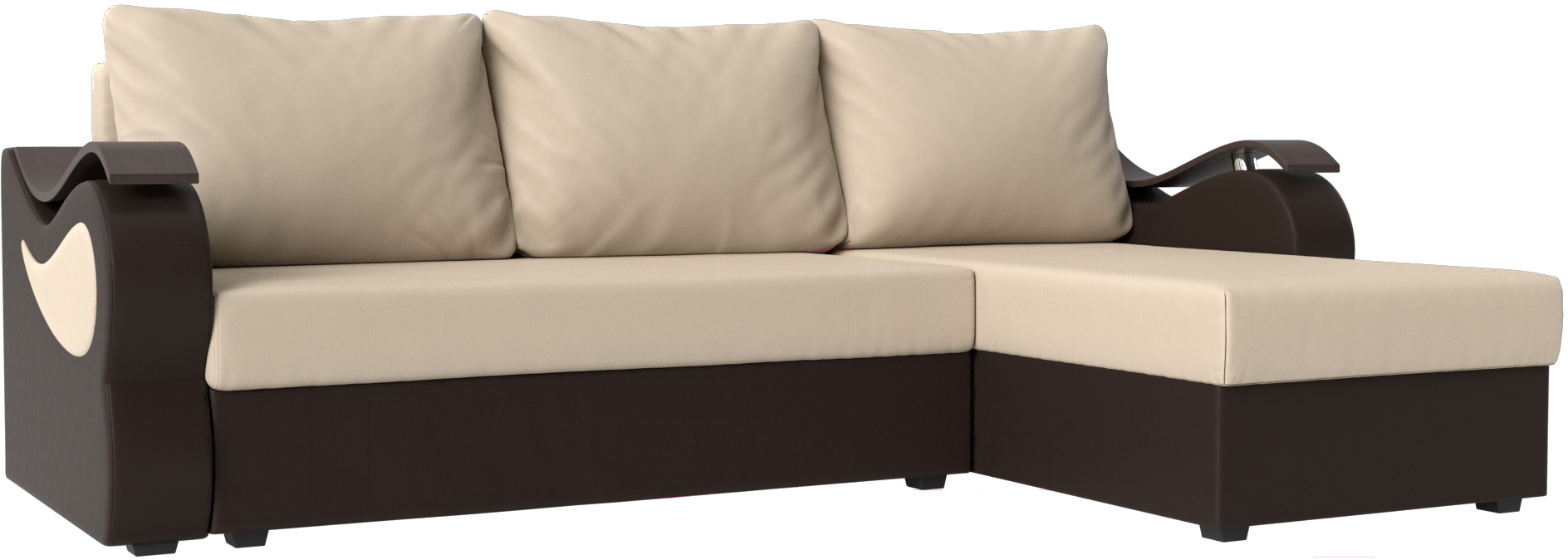 Диван угловой Mebelico Меркурий лайт правый (экокожа бежевый/экокожа коричневый)
