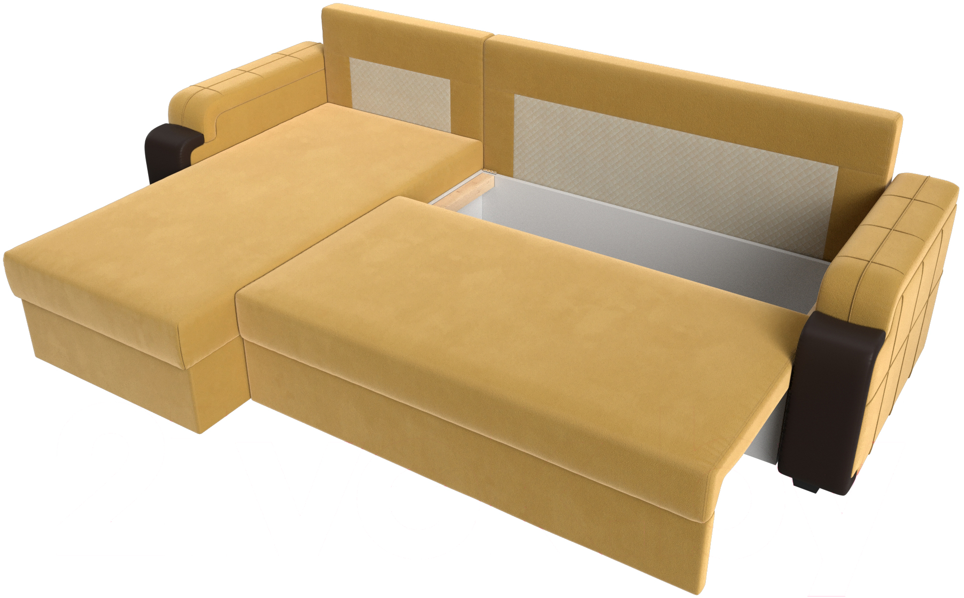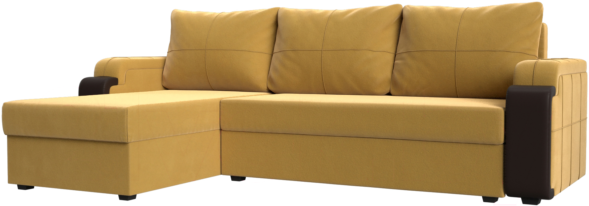 Диван угловой Mebelico Николь лайт левый (микровельвет желтый/коричневый)