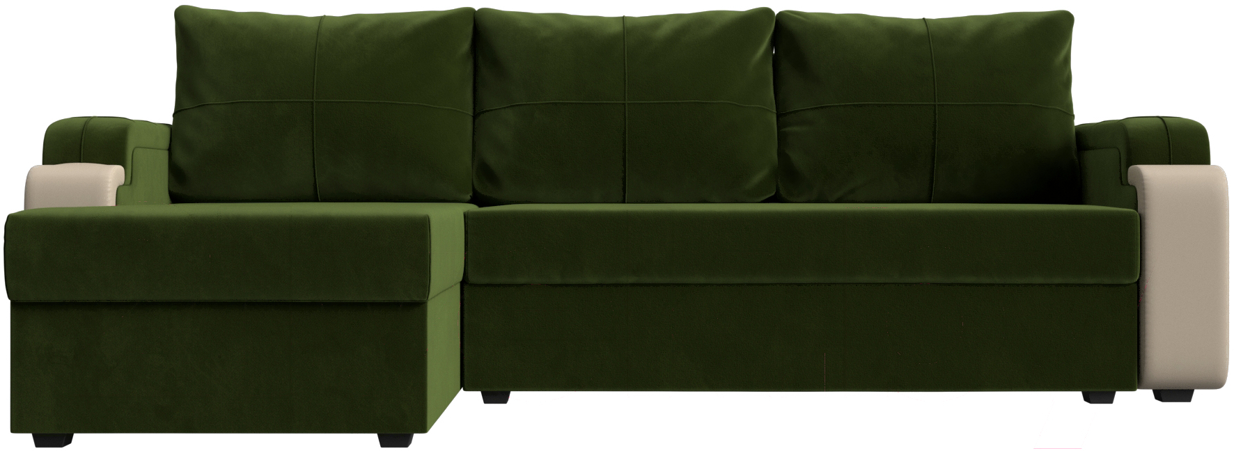 Диван угловой Mebelico Николь лайт левый (микровельвет зеленый/бежевый)