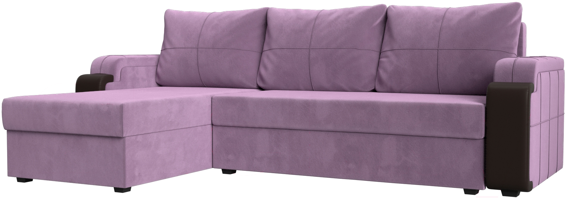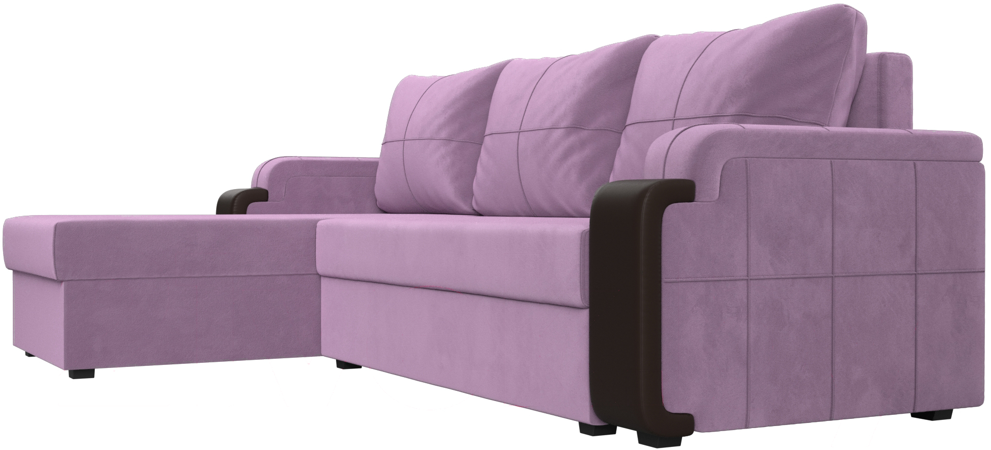 Диван угловой Mebelico Николь лайт левый (микровельвет сиреневый/коричневый)