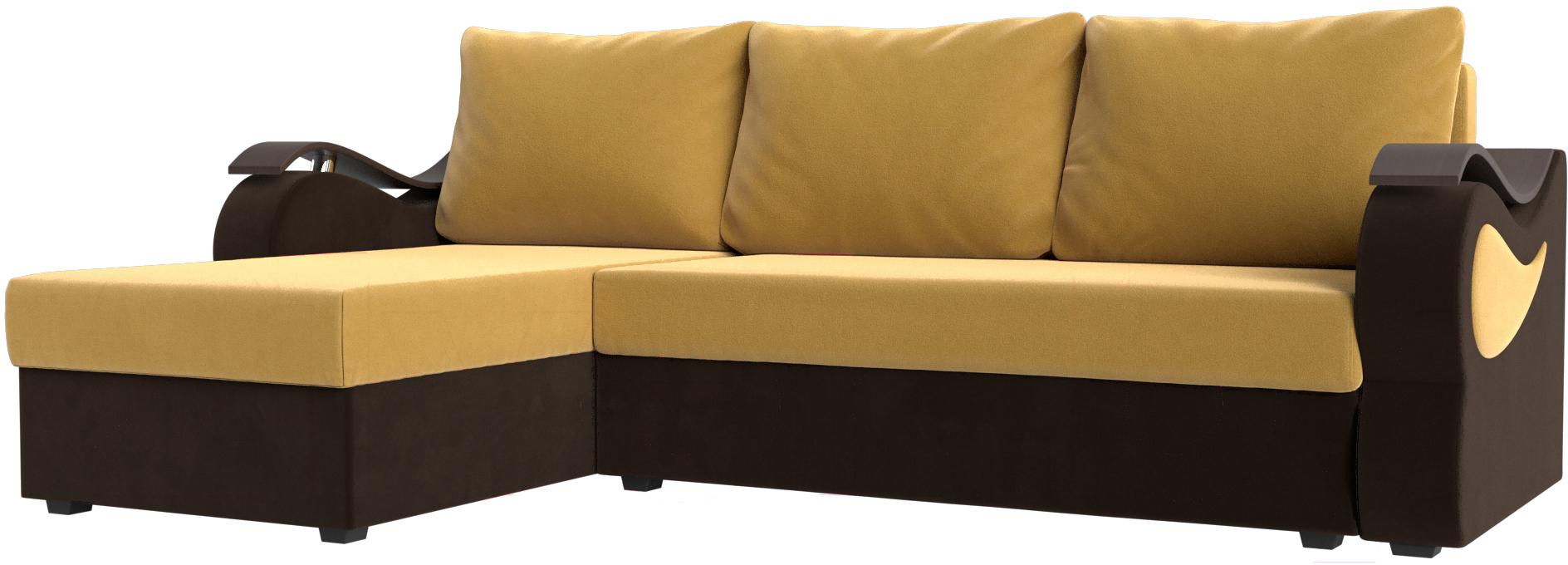 Диван угловой Mebelico Меркурий лайт левый (микровельвет желтый/микровельвет коричневый)