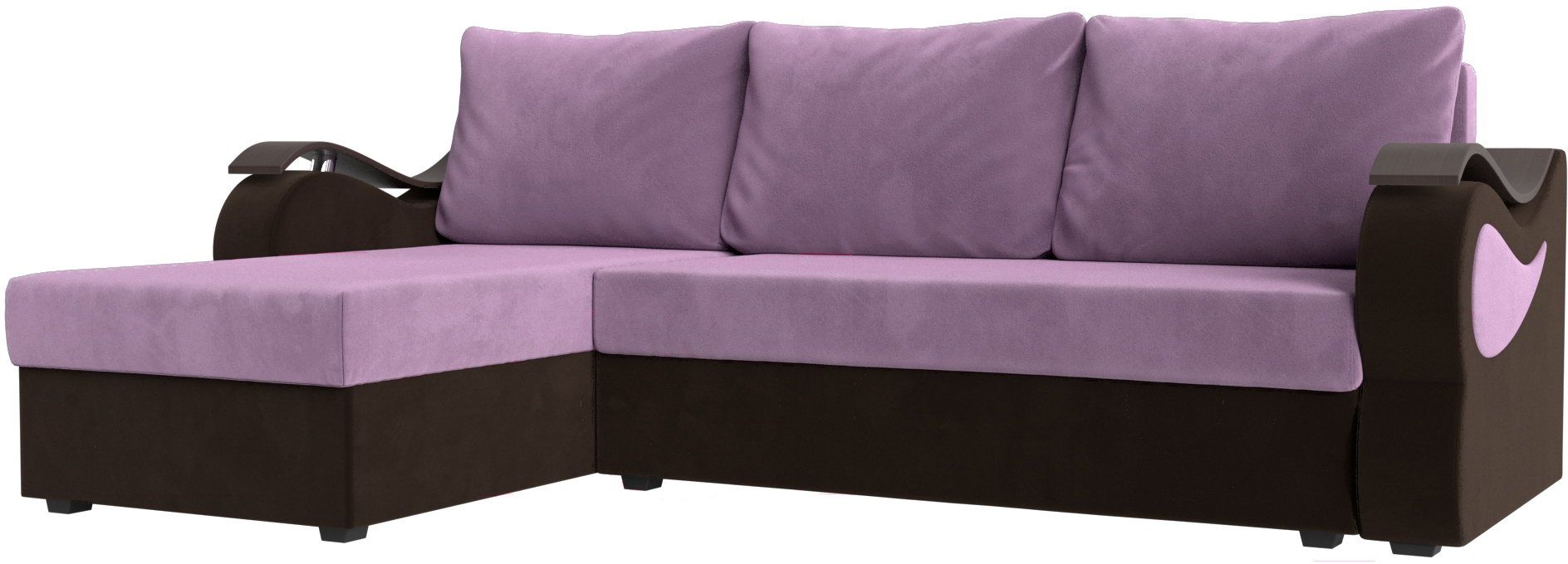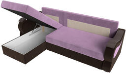 Диван угловой Mebelico Меркурий лайт левый (микровельвет сиреневый/микровельвет коричневый)