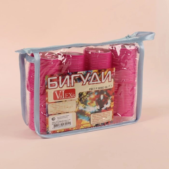 Бигуди "Липучка", d = 4,4 см, в косметичке, 8 шт, цвет МИКС