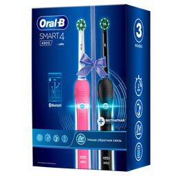 Описание товара Электрическая зубная щетка Oral-B Smart 4 4900, черный/розовый 2 шт