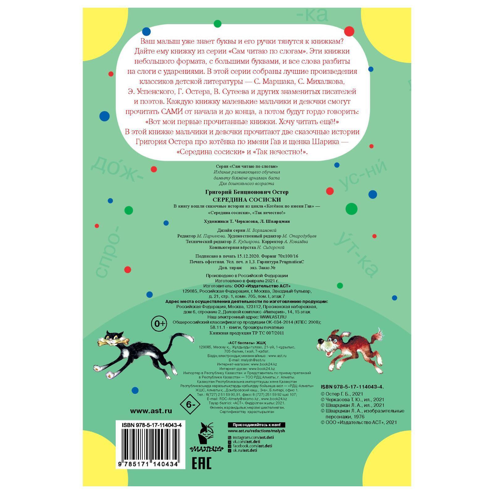 В этой книжке мальчики и девочки прочитают две сказочные истории Григория Остера про котёнка по имени Гав и щенка Шарика — «Середина сосиски» и «Так нечестно!».