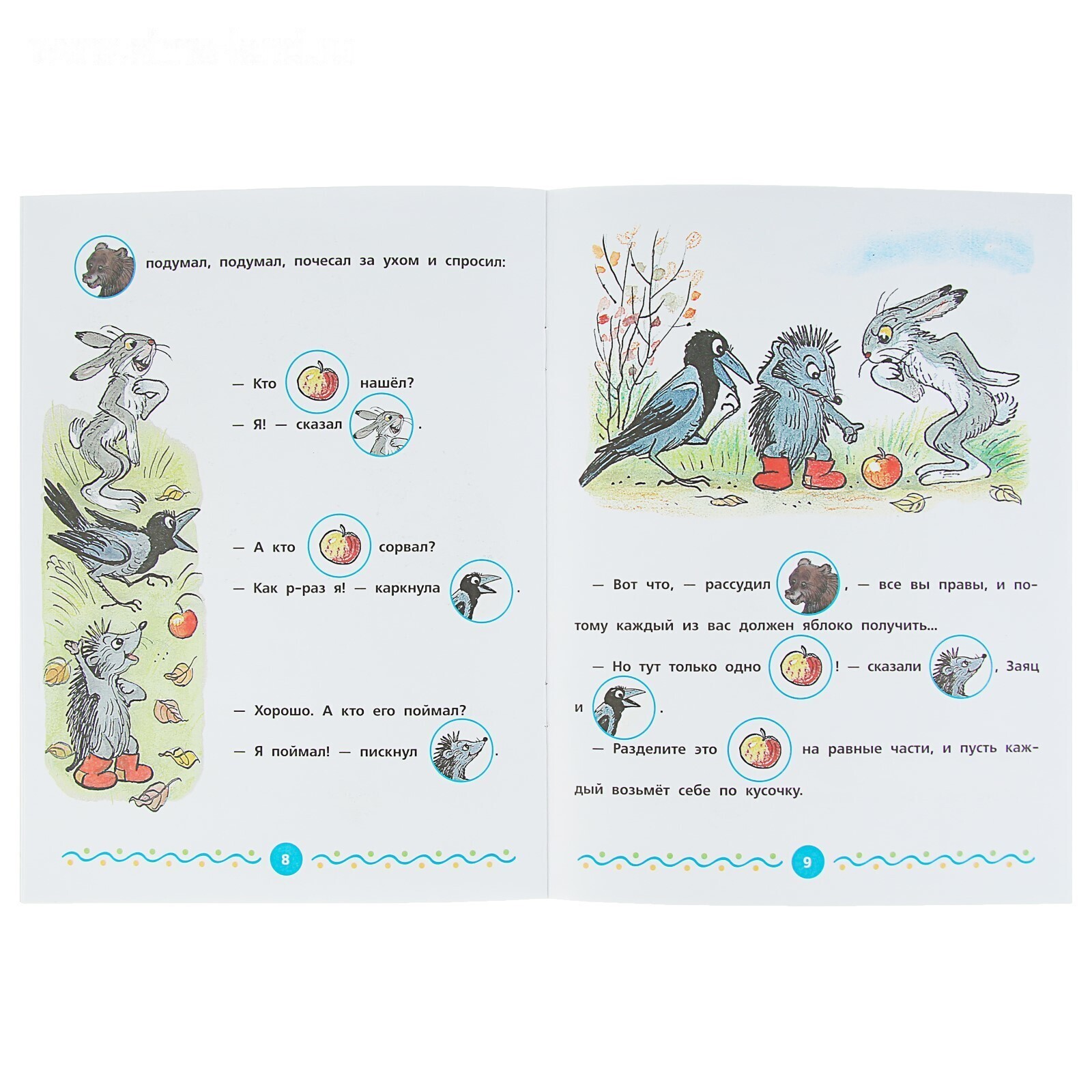 Знаменитый автор и художник В. Сутеев придумал и нарисовал добрую и поучительную сказку «Яблоко». Прочитайте малышу эту сказку и попросите его назвать вслух те слова, которые заменены картинками. Детки с удовольствием послушают про приключения лесных жителей, рассмотрят большие картинки, а заодно увеличат свой словарный запас, смогут научиться правильно излагать свои мысли и потренируют воображение!