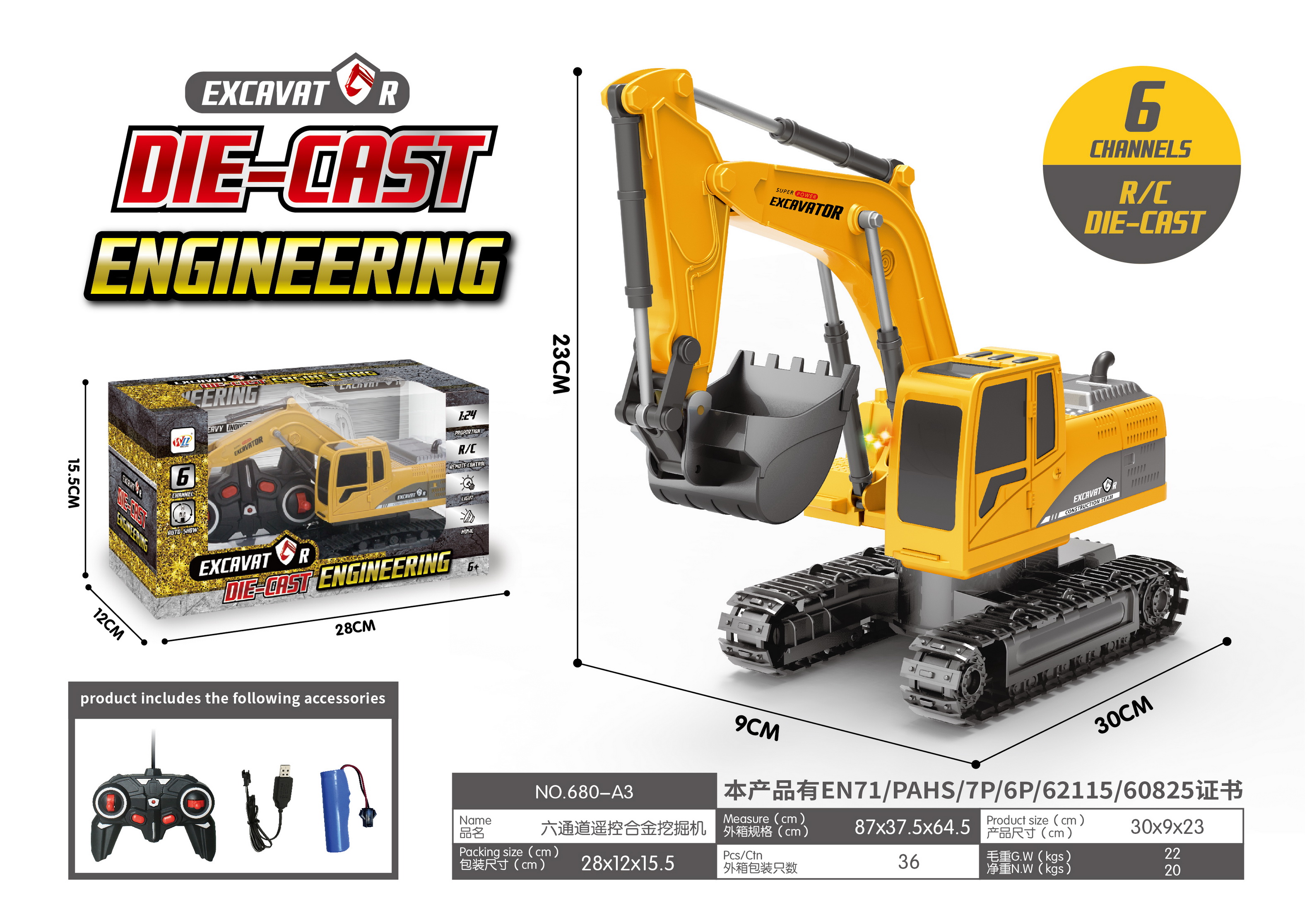 Питание: экскаватор - аккумулятор 3.7В (в комплект входит), пульт управления - 2 батарейки типа АА (в комплект не входят)