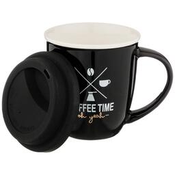 КРУЖКА С СИЛИКОНОВОЙ КРЫШКОЙ "КОФЕМАНИЯ" 370 МЛ, ЧЕРНАЯ (КОР=36ШТ.) 756-234