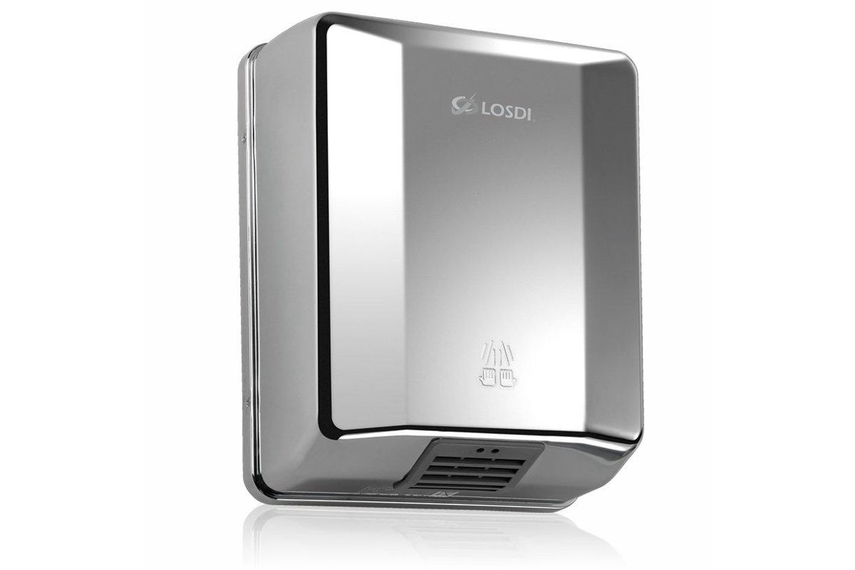 LOSDI CS-400X-L – компактная сушилка для рук от испанского бренда. Легко монтируется на стену с помощью комплектного крепежа. Автоматически включается и отключается за счёт встроенного сенсора. Модель работает от обычной сети 220 В. Отличается оригинальным лаконичным дизайном в корпусе из прочного ABS-пластика с расцветкой под хром.