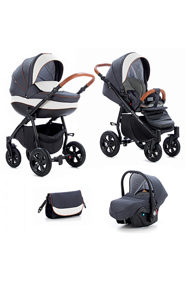 Коляска 763527-A TUTIS 3 в1 Nanni черный/кожа белый