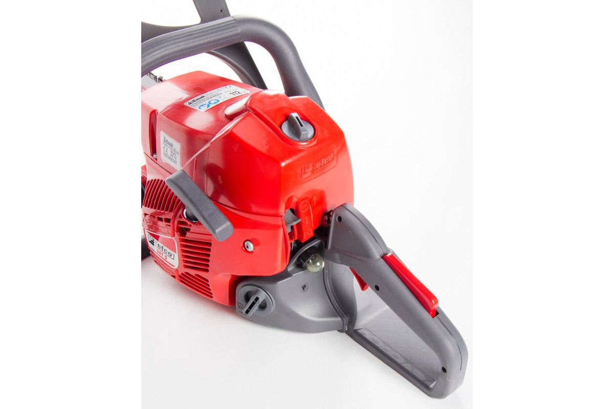 Основным защитным элементом в бензопиле Efco 141S/41 является инерционный тормоз цепи. Тормоз имеет широкое основание и надежно прикреплен к корпусу; стабильно срабатывает независимо от текущего рабочего положения инструмента. Также конструкция предусматривает наличие улавливателя, предохраняющего пользователя в случае разрыва цепи. Цепь подтягивается через боковое устройство; автоматически смазывается встроенным масляным насосом с ручной регулировкой и остановкой подачи масла при отсутствии контакта с распиливаемым материалом.