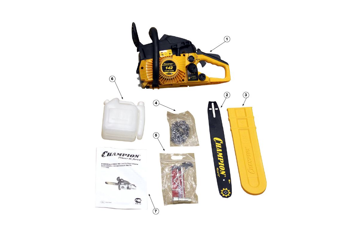 Бензопила CHAMPION 142 – функциональная и производительная бытовая цепная пила, предназначенная для выполнения различных хозяйственных работ: заготовки дров, распиловки строительных материалов, ухода за садом. Небольшой вес и продуманная эргономика в сочетании с впечатляющей для этого класса мощностью делают ее незаменимым помощником в загородном хозяйстве. Предусмотрены система легкого запуска и инерционный тормоз цепи.