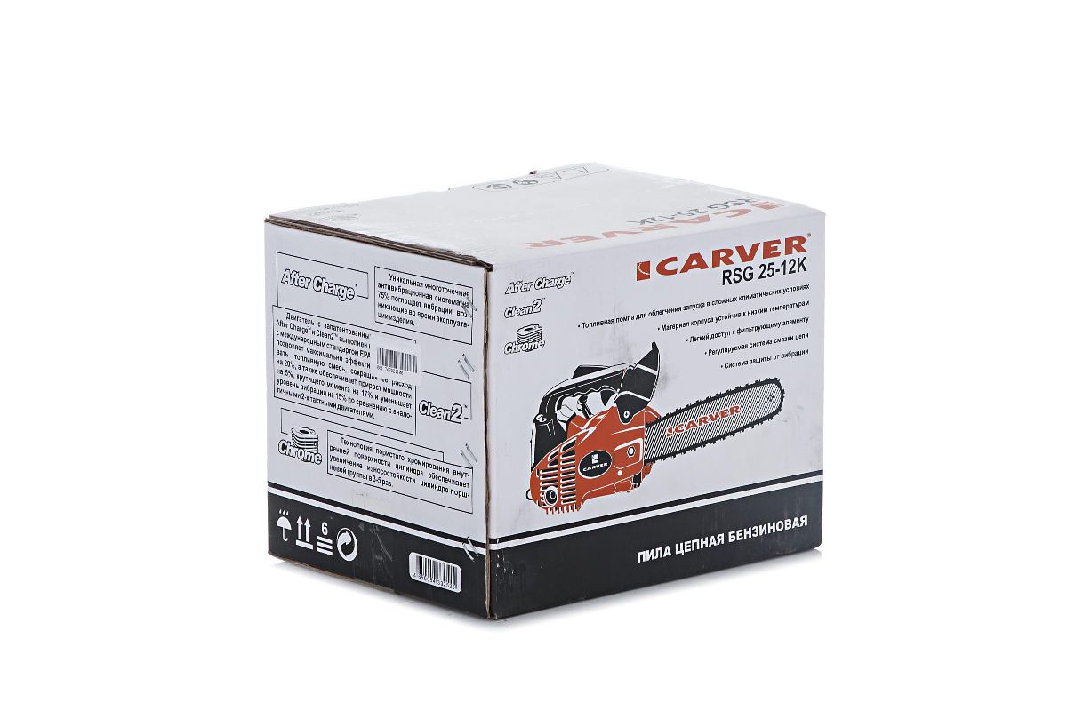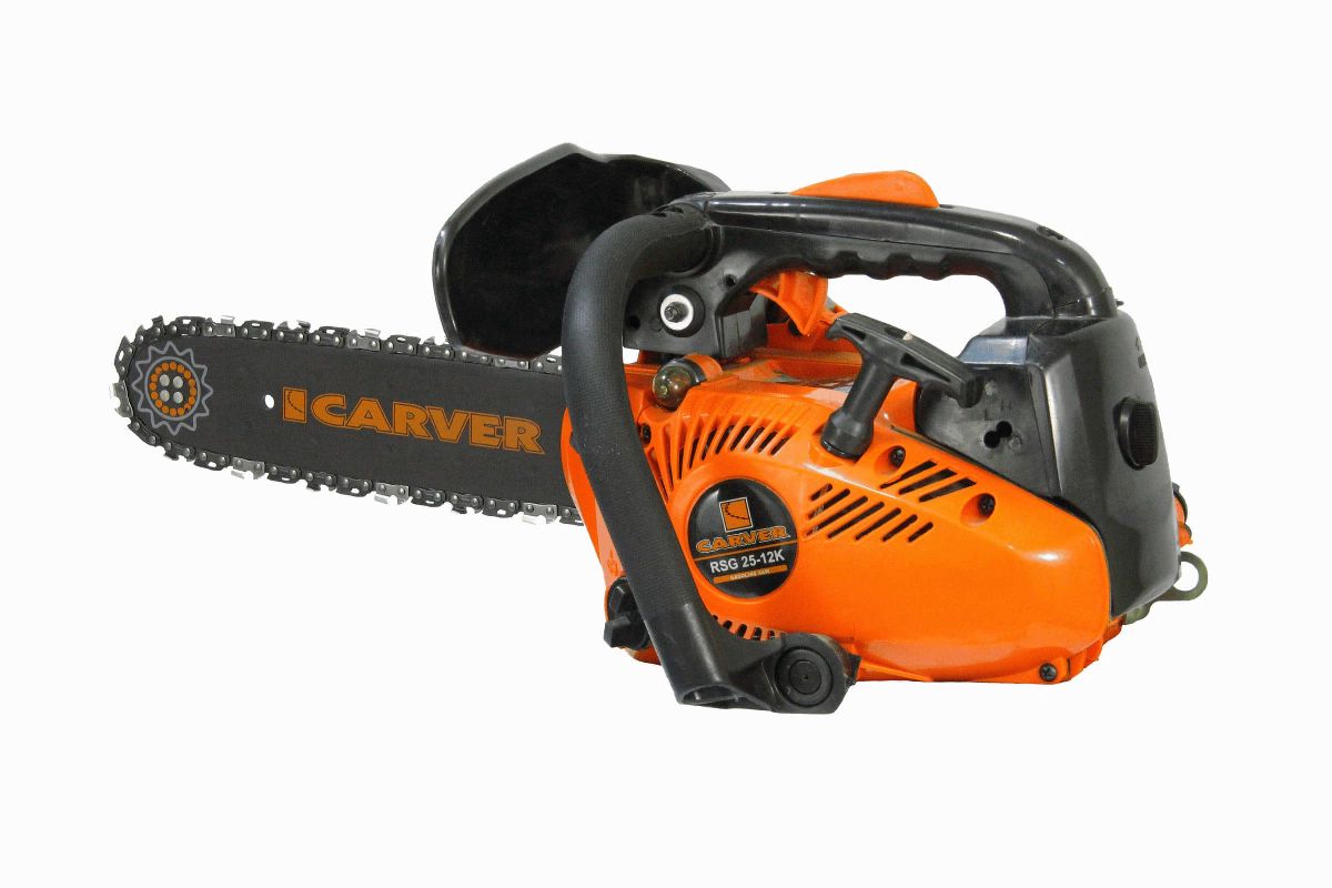 CARVER RSG-25-12K – бытовая бензопила с мощностью двигателя 700 Вт. Оснащена шиной длиной 30 см и комплектуется цепью на 45 звеньев с шагом 0,325 дюйма. Двухтактный двигатель снабжён системой воздушного охлаждения. Устройство сочетает в себе производительность и скромные габариты – 400x300x200 мм в упаковке.