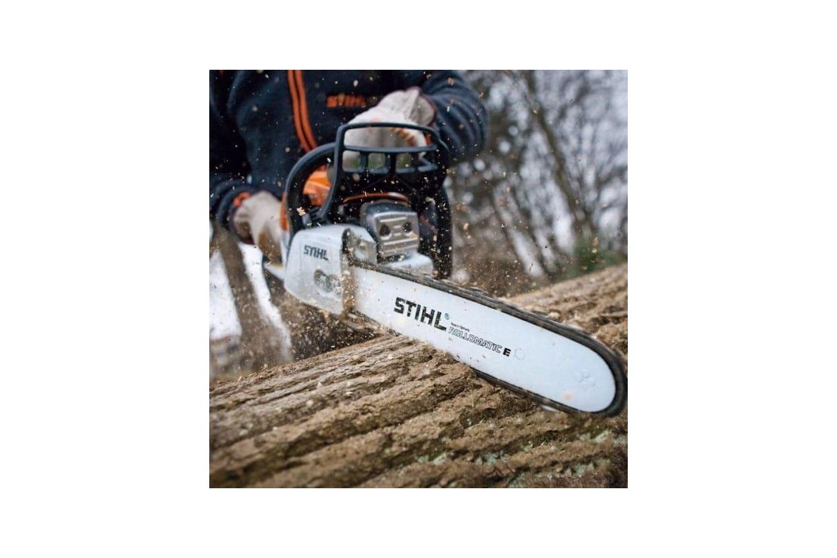 Одной из стандартных функций бензопилы Stihl MS 250 является антивибрационная система, которая препятствует передаче колебаний двигателя, снижая уровень вибрации на рукоятке. Бензопила Stihl MS 250 оснащена системой автоматической смазки цепи. Система смазки цепи «Ematic» при использовании с пильными цепями «Oilomatic» обеспечивает оптимальную смазку, увеличивает срок службы цепи и сокращает расход масла на 50% по сравнению с традиционными системами. Натяжной винт, располагающийся под крышкой цепной звездочки, позволяет легко устанавливать пильное полотно и подтягивать цепь, избавляя пользователя от необходимости касаться острых краев. Кроме того, бензопила Stihl MS 250 оборудована универсальным рычагом, который объединяет в себе все управляющие элементы, а для открытия крышек топливного и масляного баков бензопилы не нужно использовать специальный инструмент.