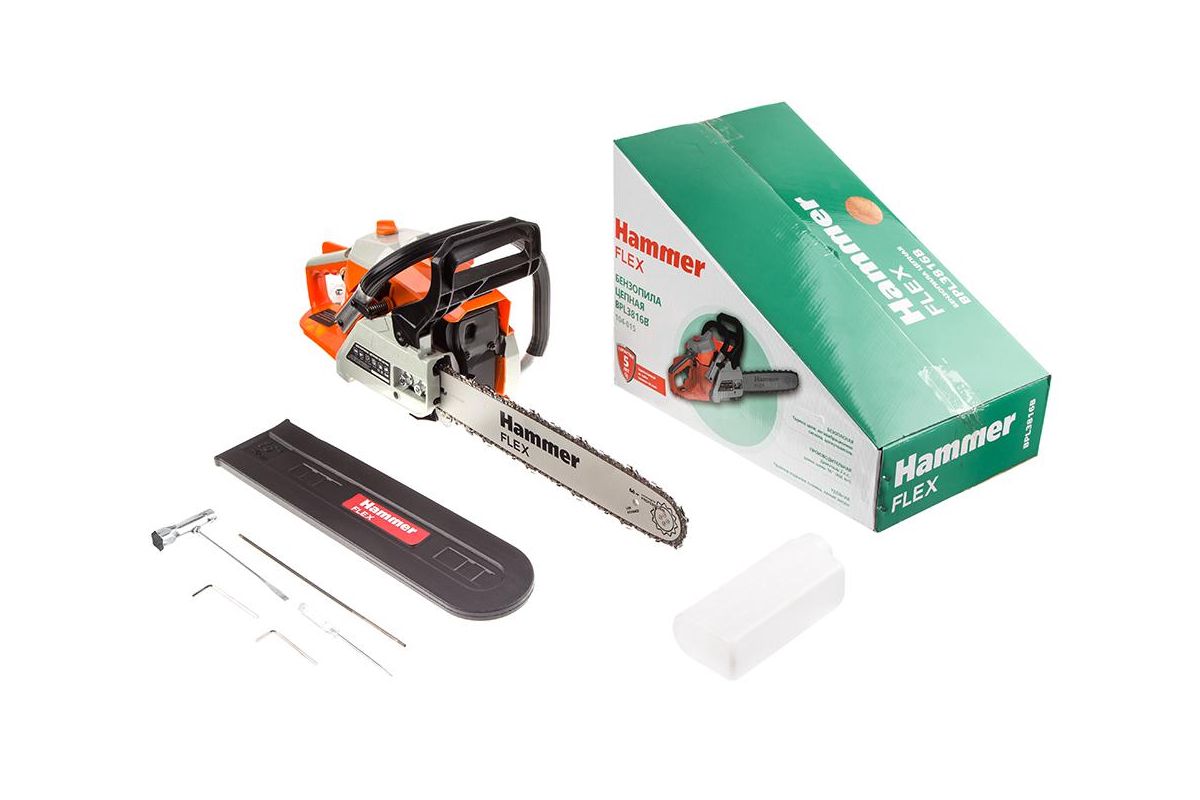 HAMMER BPL3816B – бензопила для использования в загородном доме или на даче. Мощность 1,9 л.с. Подойдёт для заготовки дров, нарезки стройматериалов, валки молодых деревьев и обрезки сучьев.