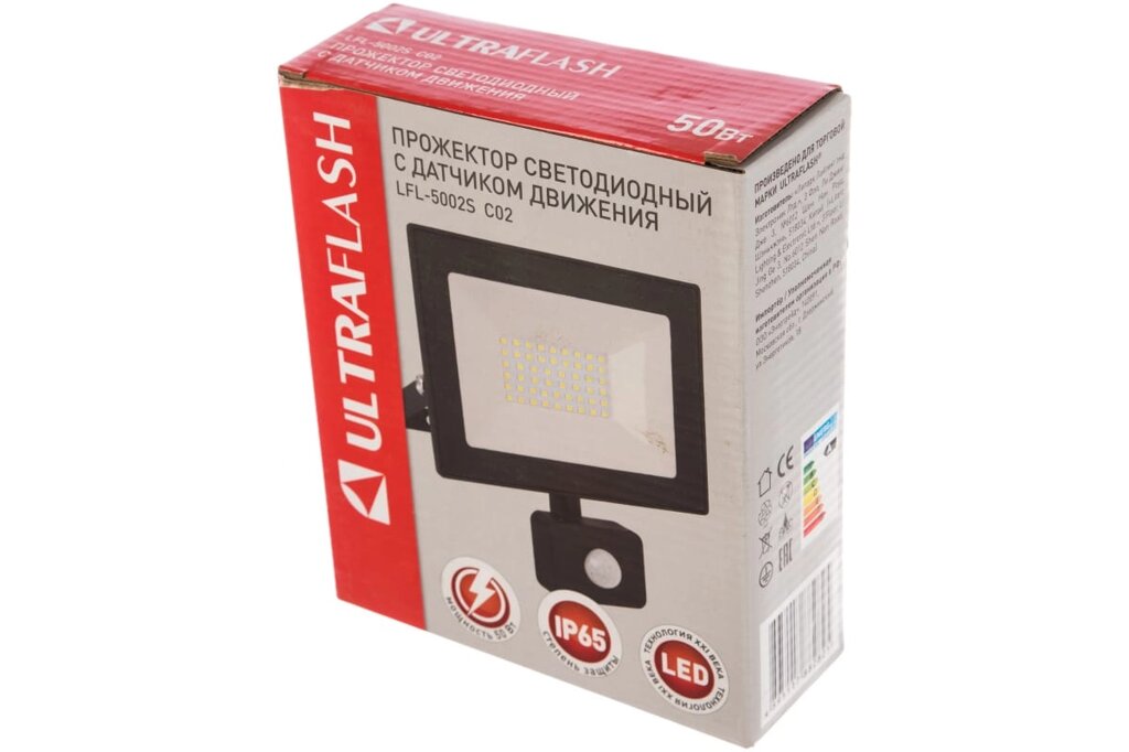 Прожектор LED Ultraflash LFL-5002S C02 черный (с датчиком, 50 Вт, 230В, 6500К)