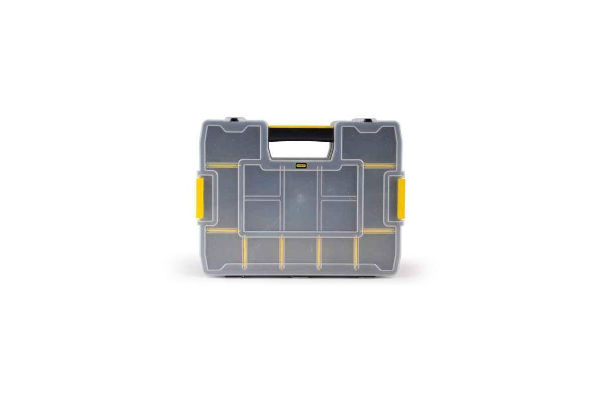 Органайзер Sort Master Junior Stanley 1-97-483 выполнен в форме кейса, служит для хранения и переноски крепежных изделий. Состоит из нескольких отделений, где удобно размещаются необходимые аксессуары и различные мелочи. Прозрачная крышка позволяет видеть расположение крепежа внутри. С помощью переставных перегородок можно регулировать размеры ячеек, чтобы максимально эффективно использовать пространство. Боковые защелки позволяют сцеплять несколько ящиков между собой. Удобная ручка помогает легко транспортировать органайзер.