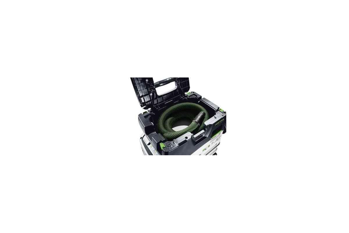 гладкий всасывающий шланг O 27/32 x 3,5 м, антистат., Bluetooth®-технология для дистанционного включения пылеудаляющего аппарата при работе с аккумуляторными инструментами, мешок-пылесборник SELFCLEAN SC-FIS-CT MINI/MIDI-2, отсек для шланга, кронштейн для кабеля, док для крепления систейнеров с замком T-LOC