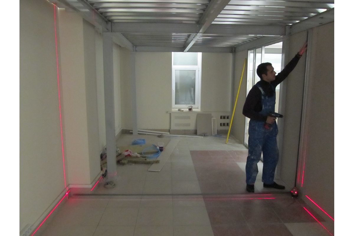 6 лучей лазера – нивелир строит 2 горизонтальные и 2 вертикальные проекции.