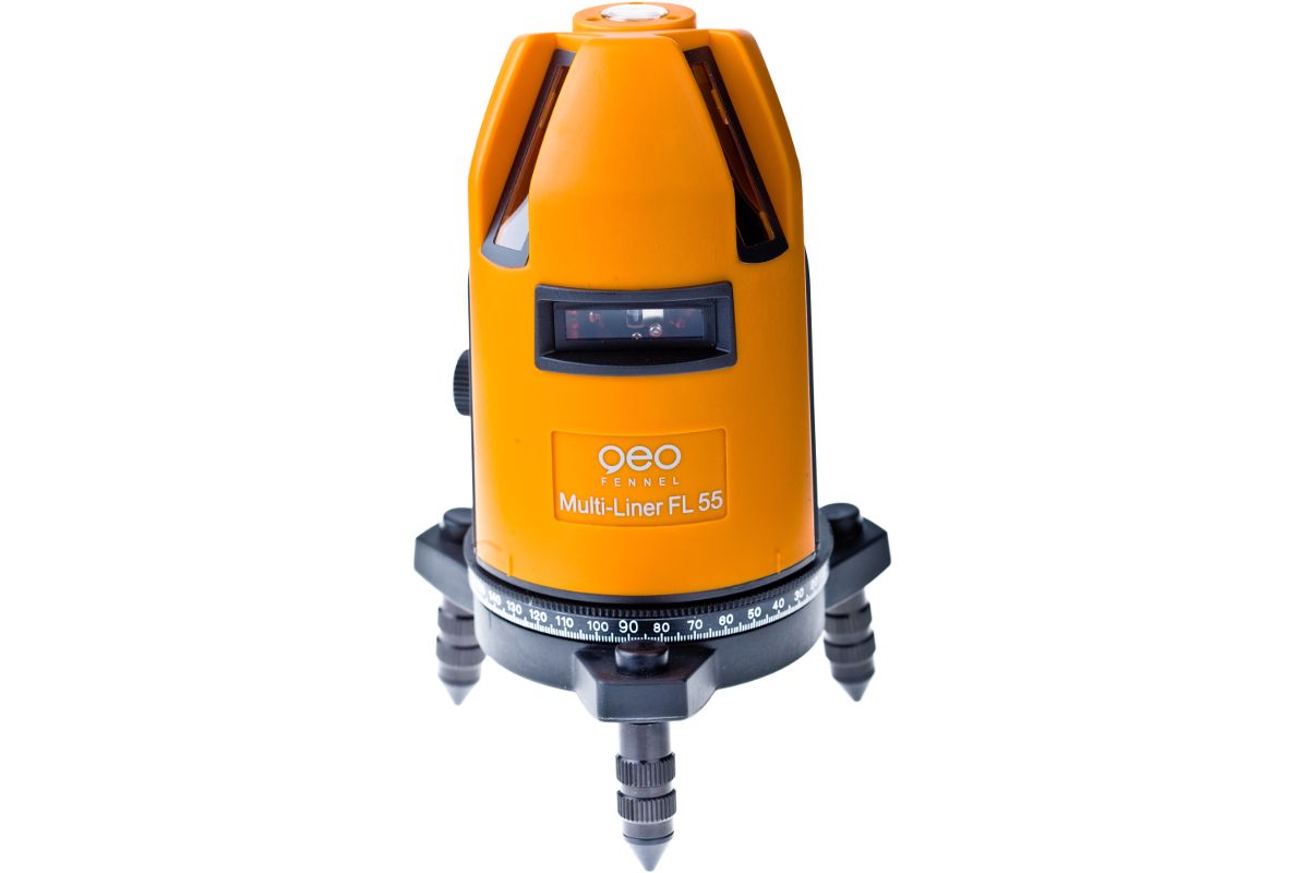 Geo-Fennel FL 55 Multilinner относится к классу профессиональных лазерных нивелиров, позволяет строить две вертикальные и одну горизонтальную плоскость с погрешностью 3 мм на 10 м. Система точного наведения с помощью горизонтального лимба значительно упрощает настройку прибора. Рабочий диапазон нивелира — 10 метров (с приемником — до 40 м).