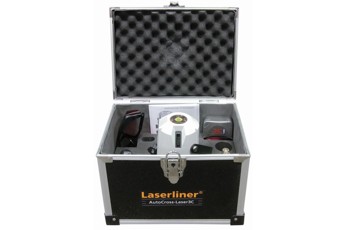 В комплекте: AutoCross-Laser 3C, аккумуляторы, устройство быстрой зарядки, очки для лазера, адаптер для установки прибора на подъёмный штатив, резиновые наконечники, кейс L-BOXX 136
