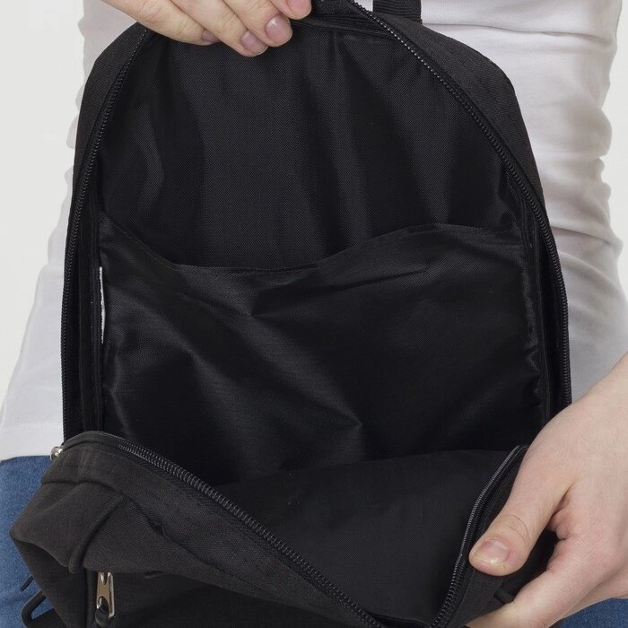 Рюкзак молодёжный на лямке, отдел на молнии, наружный карман, цвет чёрный