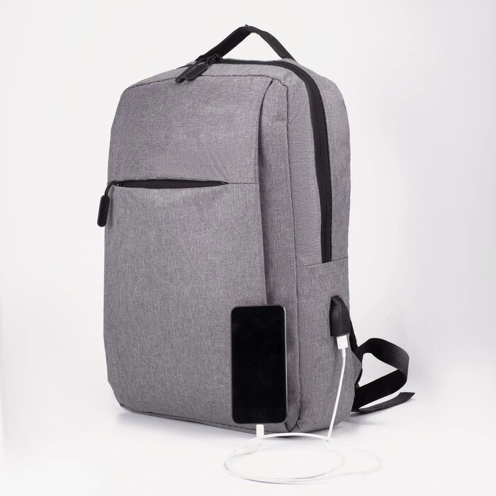 Рюкзак Нео, 29*11*39, 2 отд на молнии, 4 н/кармана, USB, серый