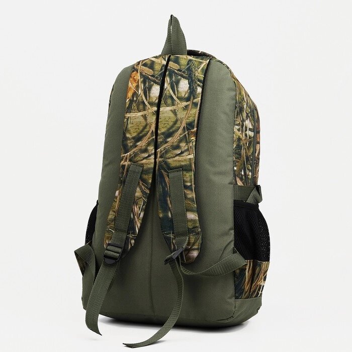 Рюкзак туристический, 2 отдела на молниях, 5 наружных карманов, цвет камуфляж
