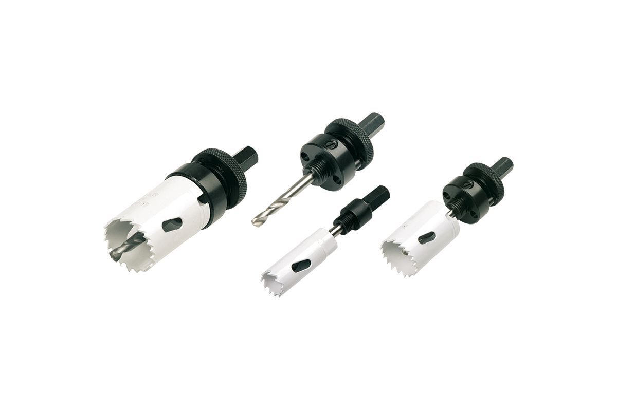 - Коронки биметаллические 5 шт.: 38, 44, 51, 57, 64 х 38 мм.