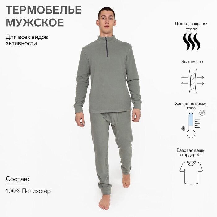 Термобельё мужское, размер 54-56 (рост 180-186 см), цвет цвет серый, флис, 100% п/э