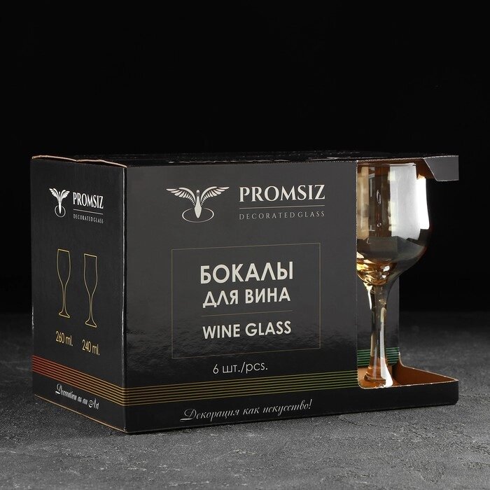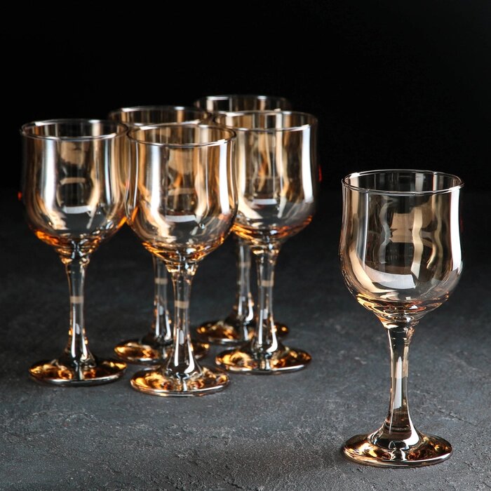 Набор бокалов для вина "Гладкость", 250 мл, 6 шт, цвет янтарь