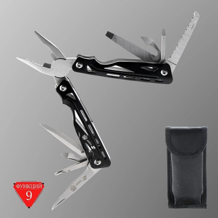 Мультитул Stinger с нейлоновым чехлом, 9 функций, сталь, алюминий, серебристо-чёрный