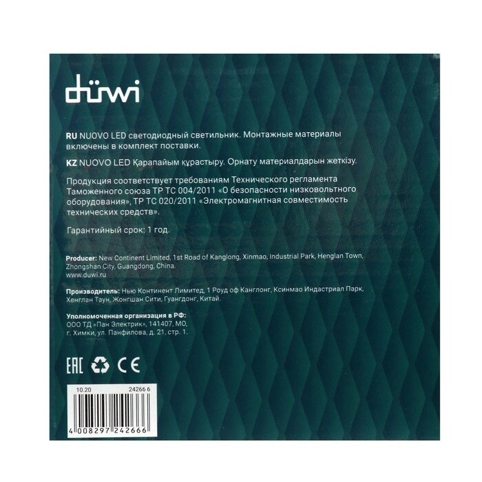 Светильник Duwi Nuovo LED, 7 Вт, 3000 K, IP54, архитектурный, широкий луч, белый