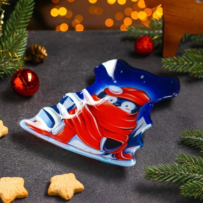 Блюдо сервировочное Доляна "Елочка с бантом. Пингвин", 21162 см