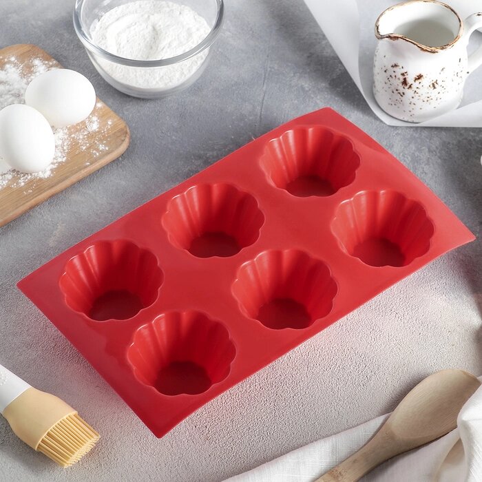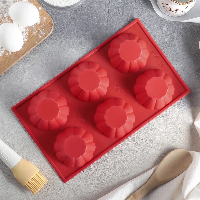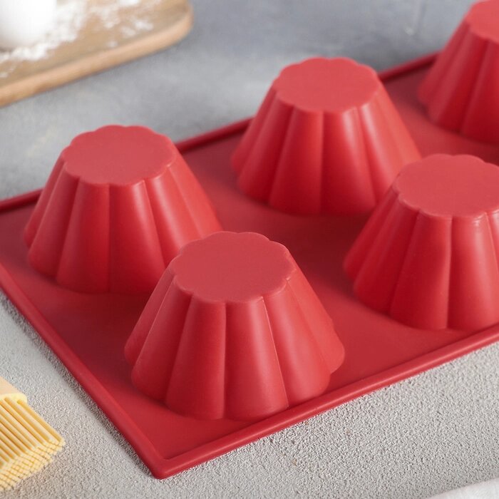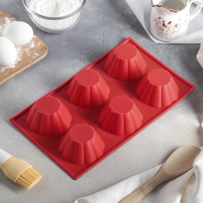 Форма для выпечки Доляна "Пудинг", 29,517,5 см, 6 ячеек (774 см), цвет МИКС