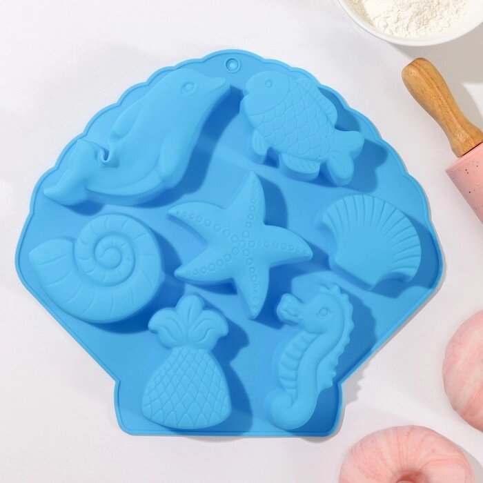 Форма для выпечки Доляна "Морские обитатели", 26242,5 см, 7 ячеек, цвет МИКС